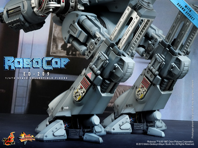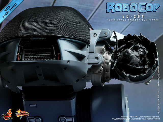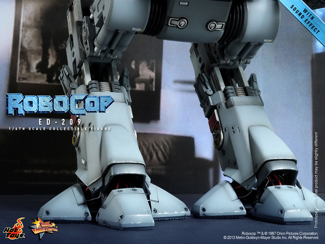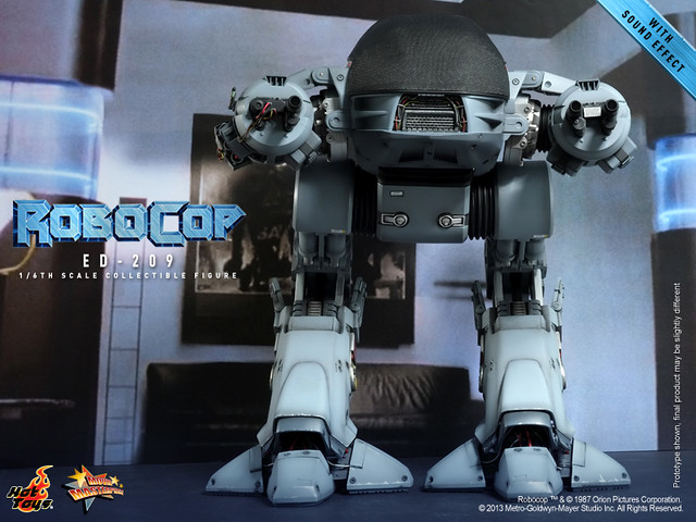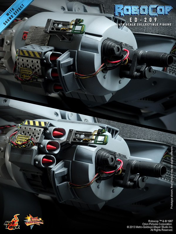 Hot Toys 今日除了發表合金系列兩種不同版本的「機器戰警」之外,還將推出電影中另一個令人難忘的角色,機械守衛ED-209!雖然不是採用合金製做,不過與「機器戰警」相同,同樣內建了會說話的音效晶片,啟動開關之後會說出三種不同的台詞: