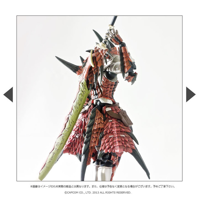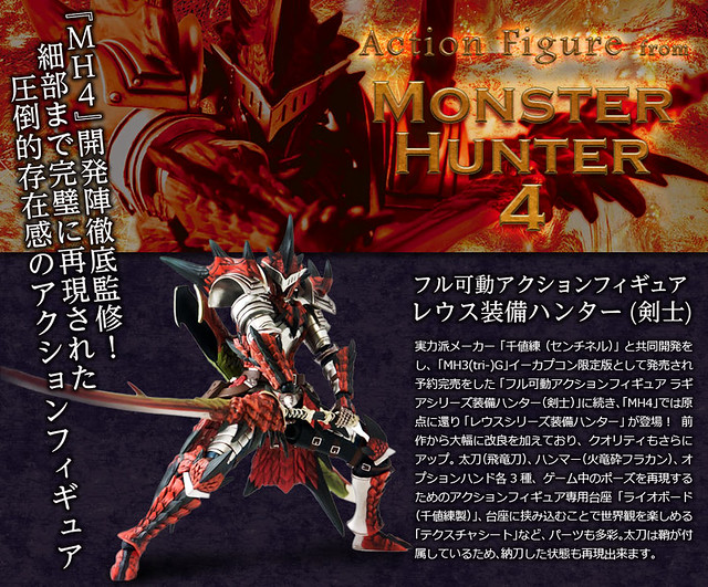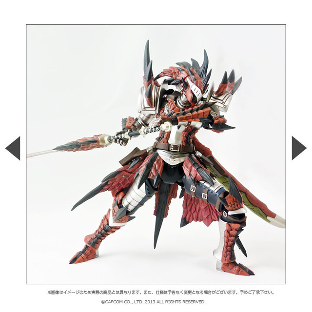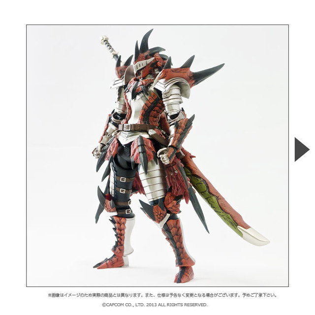 日本老牌電玩廠商CAPCOM 與玩具公司「千值鍊」合作,將推出魔物獵人4 :雄火龍裝男剣士(レウス装備アクションフィギュア)。