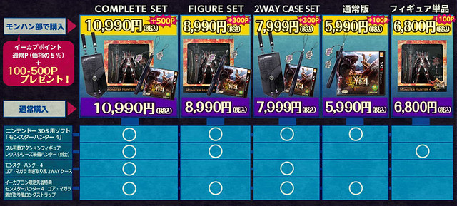 「魔物獵人4」一共有多種與同捆商品搭配的販售方式,有興趣的玩具人可以參考以下的圖片: