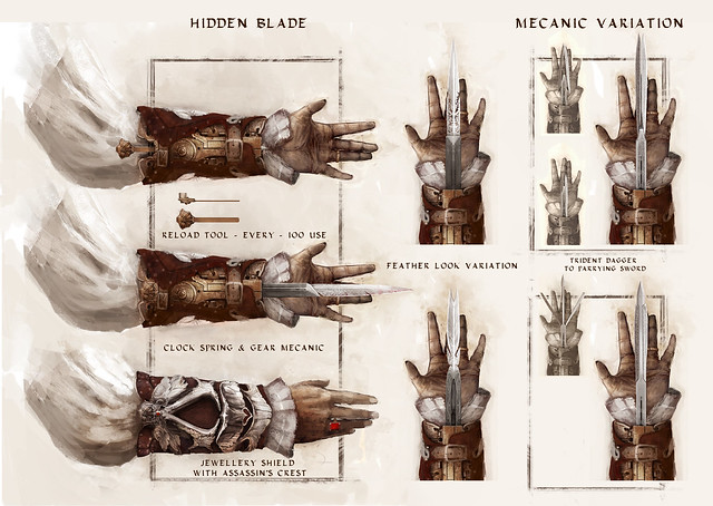 去年中,玩具公司NECA 也曾經推出過「刺客教條2」版本的1:1 袖劍。這次由「麥法蘭玩具」所推出的,是預計於今年11月發行的「刺客教條」系列作品最新作『刺客教條4:黑旗』(Assassin's Creed 4: Black Flag)。主角為英國青年愛德華.肯威(Edward Kenway),從一名海盜投身成為刺客聯盟的成員,對抗聖殿騎士。