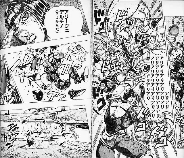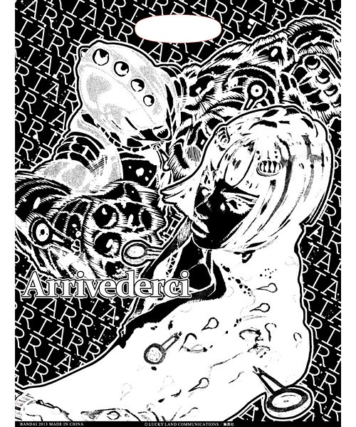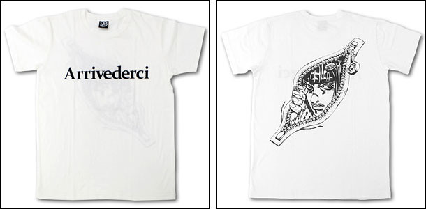 繼第一彈的『歐啦歐拉T恤』,第二彈推出名為『Arrivederchi』(義大利文:再見了!),以第五部主角群、率領布加拉提小隊的領袖「布羅諾.布加拉提」(Bruno Buccellati / ブローノ・ブチャラティ)與其替身「鋼鍊手指」(Sticky Fingers / スティッキィ・フィンガーズ)為主題。正面以布加拉提在連打喊叫之後的結束話語『Arrivederchi』作為設計。(原文:「アリアリアリアリ——アリーヴェデルチ(Arrivederci=再見了)!」)