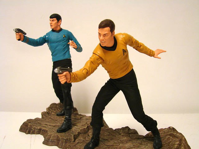各位玩具人還記得上次小編所介紹的Diamond Select Toys – Star Trek 星際爭霸戰 復古回歸第一彈嗎?!這是在1967 年星際爭霸戰第一季第25 集 – The Devil in the Dark 中的企業號的船長寇克(Captain Kirk)與企業號的科學官史巴克(Mr.Spock)一起並肩探勘的經典片段,而Diamond Select Toys 公司預計將推出7 吋星際爭霸戰之玩具反斗城限定版本的吊卡作品,共推出二款:寇克(Captain Kirk)與史巴克(Mr.Spock)。二款作品皆有附送精美地台讓各位擺放,而史巴克的吊卡更附上了三度儀(tricorder)的配件呢,進期在北美地區的玩具人可以前去當地的玩具反斗城(Toys "R" Us)碰碰運氣喔,發售資訊尚未公佈。