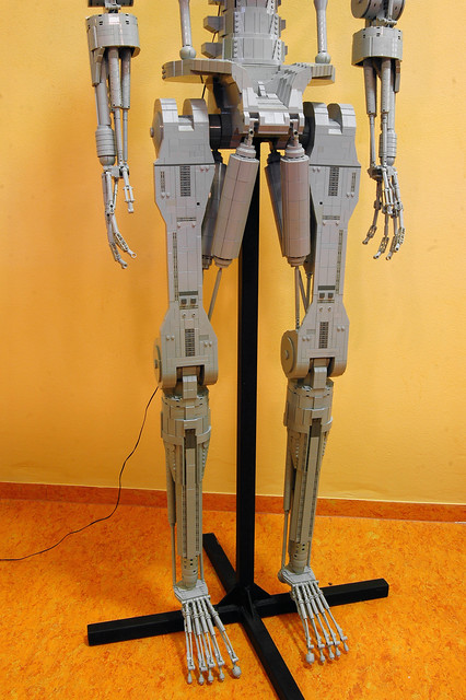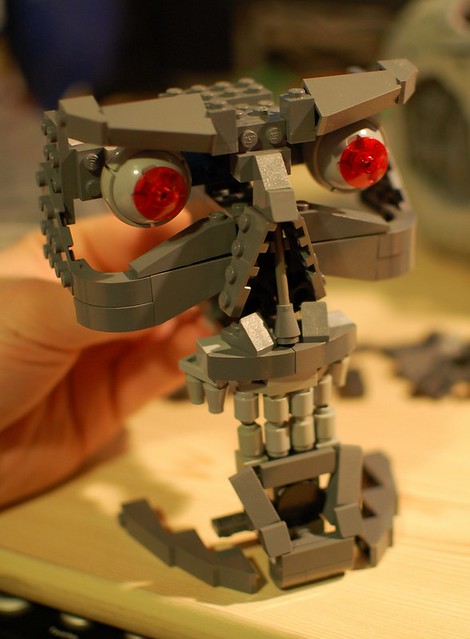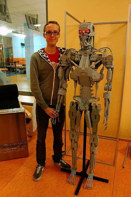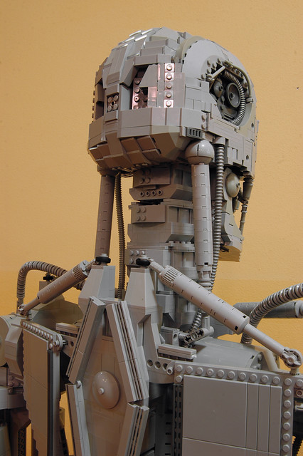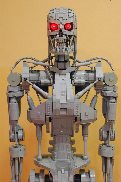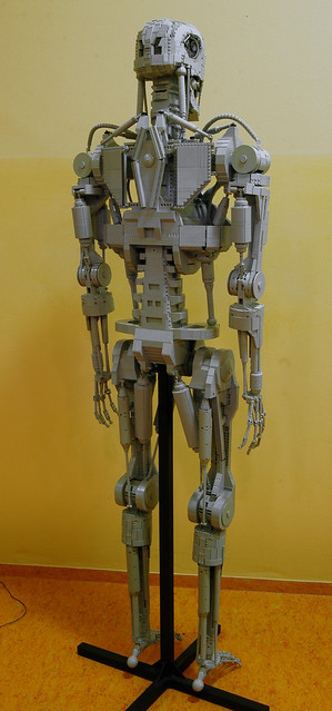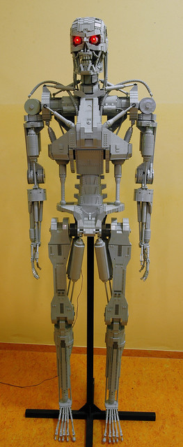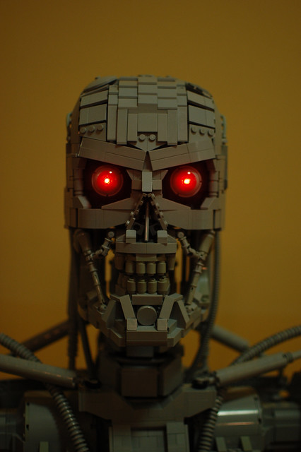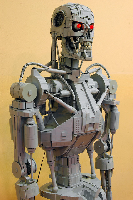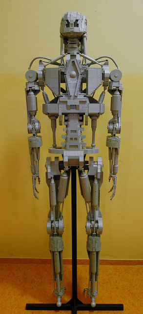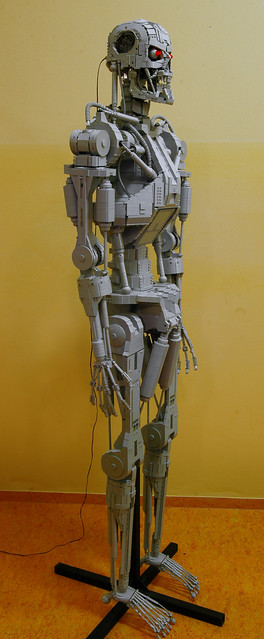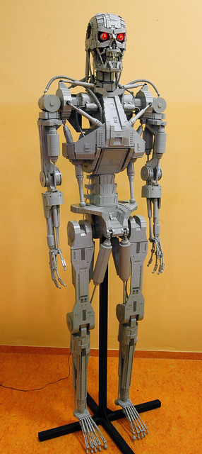 捷克的樂高玩家Martin Latta (A.K.A thire5)參考了許多電影劇照、圖片打造出一款真實比例(life sized)的魔鬼終結者T-800 機器人,全高186公分、重達15公斤(製作耗費時間並未透露),並且內建眼睛發光的功能。作者Martin Latta 特地授權與各位玩具人分享了他的製作過程,讓各位有機會欣賞他超精彩的作品。