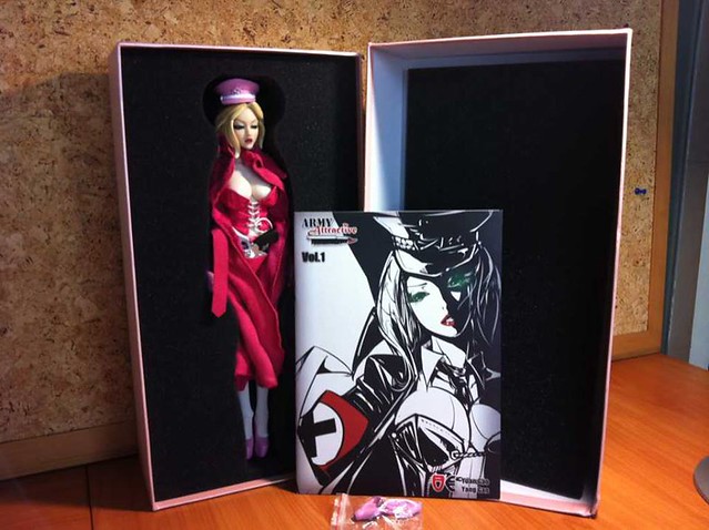 Original Effect 公司(簡稱OE)是一個新成立的12 吋可動人偶品牌,目前主要是將旗下「軍魁」(Army Attractive)漫畫系列的主角立體化成12 吋女偶,相信OE 公司結合了軍偶與性感女偶發展出新系列的作品,定可以在女偶界中闖出一片天。軍魁漫畫系列的主要故事是在講述的是在不久的未來,有一支沉寂很久的獨裁勢力,突然再次浮現於世,開始致力於創造出自認為最完美的人種,並且以殘暴的面目重新出現在人們面前,Viola 這個角色就是第一批被培育出的純粹人種,白皙的皮膚、淺黃的頭髮、藍綠的眼睛,與其他被創造出來的純粹人種一樣,Viola 一開始也成為這個邪惡組織的爪牙和幫兇,但在經歷組織滅絕人寰的大清洗後,Viola 的思想發生了動搖,從新認識了自己的使命,成為反抗這一邪惡組織的戰士。目前OE 公司已經推出多款角色,而小編今天要分享給大家的是在今年泰國玩具展(Thailand Toy Expo 2013)中,Original Effect 公司與泰國最大玩具代理商JP TOYS 所推出限定30 體的Pink Viola 作品,這個角色主要是軍魁漫畫系列的支線作品,不知道在少少的30 體限定當中,可否有台灣的玩具人入手呢?!快來與大家分享一下吧。