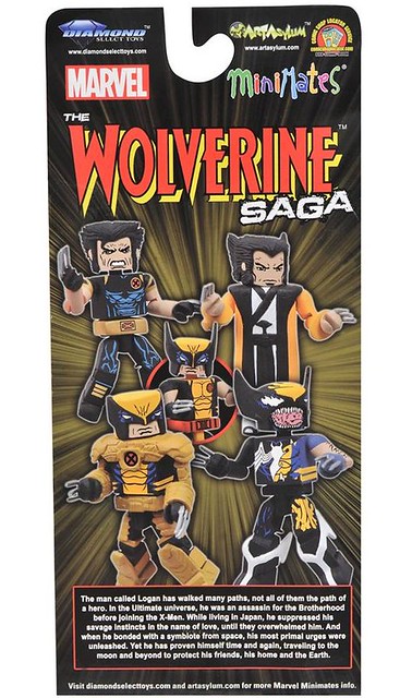 伴隨著2013 年的聖地牙哥動漫展(San Diego Comic-Con;SDCC)的慢慢逼近,各家玩具廠商也紛紛推出了今年SDCC 的限定商品。當然,為了搶搭暑假經典大片「金鋼狼:武士之戰」(The Wolverine)的風潮,Diamond Select Toys 公司去年於NYCC 2012 會場所展示的金鋼狼Minimates 系列作品,則成為了今年SDCC 2013 會場的Marvel Minimates 系列的作品 - 金鋼狼戰記組(Wolverine Saga set)。