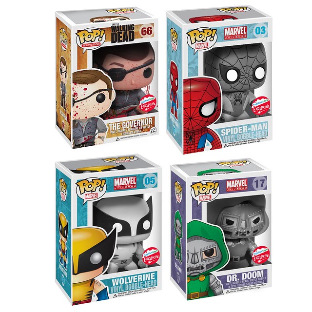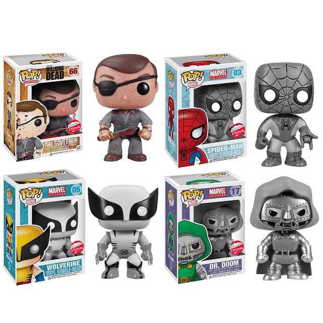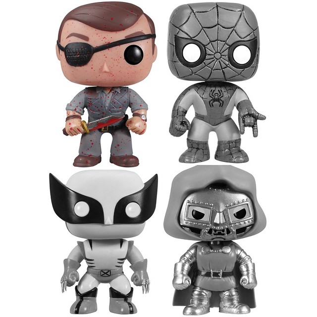 2005 年成立至今的網路玩具商店 - fugitive toys 於今年2013 年聖地牙哥動漫展(SDCC)推出了與FUNKO 公司的聯名限定商品,並可以獨家於fugitive toys 的網路商店預購。首波推出了三款經典MARVEL 角色的Pop! Vinyl MARVEL 系列的作品:黑白搖頭蜘蛛人(Spider-Man)、黑白搖頭金鋼狼(Wolverinen)、黑白搖頭末日博士(Dr. Doom);以及自陰屍路系列推出後必會發行的濺血版作品:州長濺血版(The Governor)。然而,好康再搭配,fugitive toys 公司又推出了搭配過去三款限定作品購優惠的活動,分別是:濺血版坦克殭屍(Tank Zombie)、暗黑閃電俠(Black Flash)、Inverse Deadpool。不想去SDCC 會場人擠人嗎?!不想去SDCC 會場排隊嗎?!有興趣購買這次FUNKO X fugitive toys SDCC 2013 限定品的玩具人可前去fugitive toys 網路商店預購,等SDCC 結束後一個禮拜就可以收到限定品啦!四款限定一組建議售價:美金62.99 元;七款限定一組建議售價:美金119.99 元。