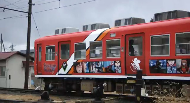 ↓ 福音戰士新劇場版:Q 紀念電車 外表和內部模樣。