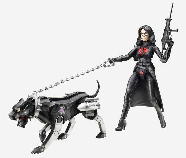 面對正派的超豪華正容(看了都感動的流淚),反派陣營則是派出了:“男爵夫人”(Baroness)牽著超帥的狂派機械狗“Ravage” 以及變形金剛超具有特色、被票選為變形金剛史上最邪惡反派第三名、與日本古代武士鎧甲融合的“雷震”(Decepticon Bludgeon)