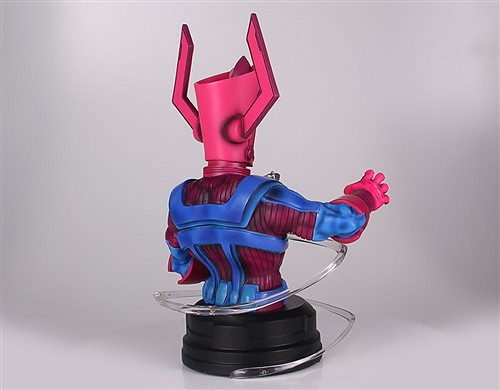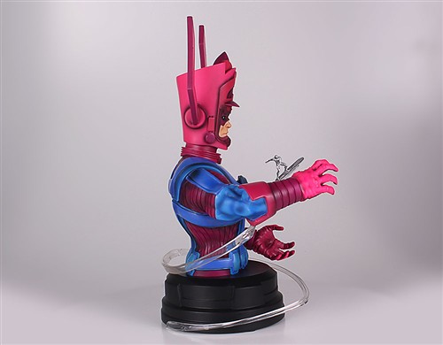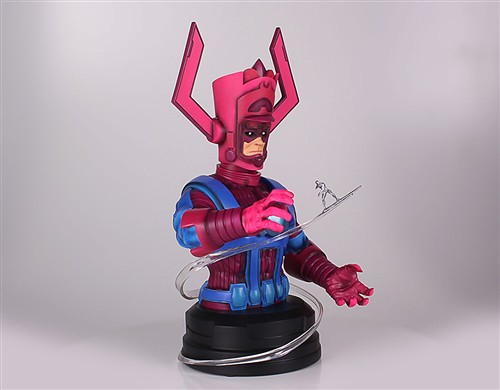 左等等、右等等,果不然的半身雕像(Mini Bust)的玩具大廠Gentle Giant 終於發佈了今年2013 SDCC 的限定品啦!這次Gentle Giant 公司將要推出在電影驚奇四超人2:銀色衝浪手中短暫出現黑壓壓一片的 - 銀河王(Galactus)。這個由史丹.李(Stan Lee)與傑克.克比(Jack Kirby)所創造的邪惡角色最早出現在1966 年漫畫驚奇四超人(Fantastic Four)第48 集中。擁有宇宙力量的Galactus 與Eternity、Death、Infinity、Oblivion 同為Marvel 宇宙核心的五個扛霸子。經過了億萬年的演進。銀河王(Galactus)儼然成為Marvel 世界觀中的神一般的男人,但身為一個神,卻需要靠著吸取不同星球上的能力維生。因此,為了找尋更多的星球,Galactus 就把這邪惡的任務交給了他的僕人 - 銀色衝浪手(Silver Surfer)。為了避免自己星球慘遭銀河王的小甜點,銀色衝浪手甘願永遠成為他的僕人,而銀河王也賜與他宇宙能量(cosmic power),讓他變成全身銀色的造型。而銀色衝浪手的身體與衝浪板則成為了宇宙中最堅硬的物質之一。為了參與2013 年聖地牙哥動漫展(SDCC),Gentle Giant 推出了限定800 體的銀河王半身1/6 比例的雕像作品,而在銀河王(Galactus)周圍是由銀色衝浪手(Silver Surfer)化作一道銀色的軌跡,而這是採用非常高品質的樹脂材料所完成的喔!除了造型漂亮之外,可是也很堅固的。而每款作品都會以手工的方式塗上編號,更具收藏價值喔!而現在Gentle Giant 公司更推出了預定Gentle Giant – 鋼鐵人 3 戰爭機器 1/6 PGM 限定半身雕像商品可折扣美金10.00 元的優惠活動來預定Gentle Giant – 銀河王 1/6 SDCC 限定800 體半身雕像作品。