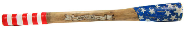 手柄上的一側寫著象徵美國精神的註明標語“These Colors Don’t Run”(意指:精神不滅、絕不退縮 或 永不放棄),另一側則是寫著“Hey, Ho, Let’s Go…”(上吧...),並以紅白膠布纏繞加上老鷹裝飾,搭配藍色星條旗塗裝左以立體的星星裝飾,更增添了美國的精神表現,也令其更加地呼應“星星上校”的身份象徵。