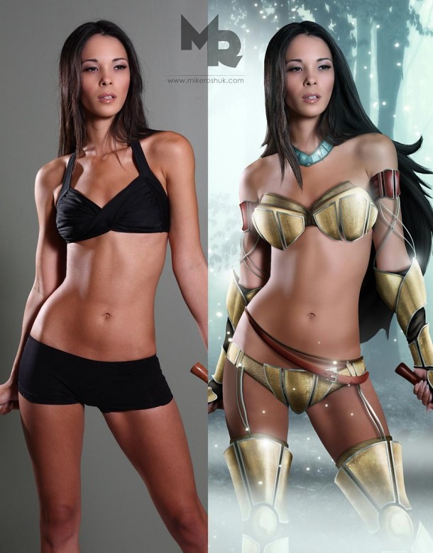 加拿大愛德蒙頓的一位插畫、攝影、數位藝術家“Mike Roshuk” 創作了一款名為「Happily Ever After」(從此幸福快樂...)的數位插畫作品,結合了攝影、插畫以及數位合成,將經典的迪士尼卡通電影公主,一一變成了性感又剽悍的奇幻風格女戰士們,非常有意思的創作。