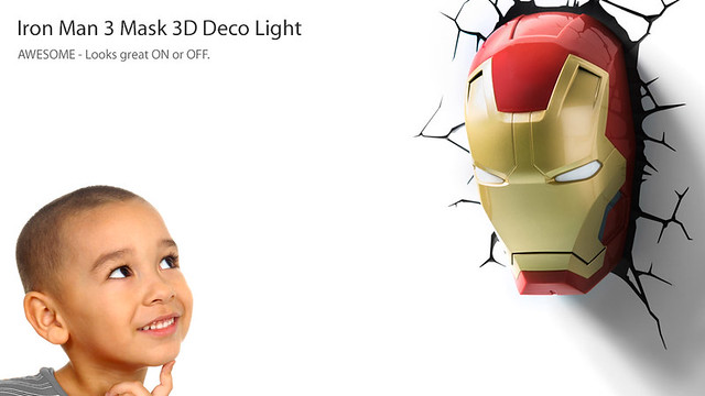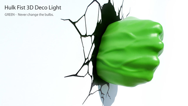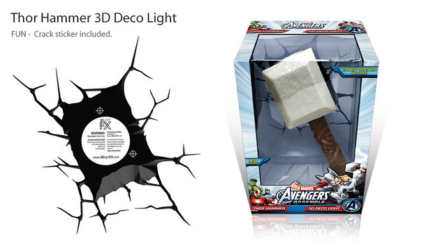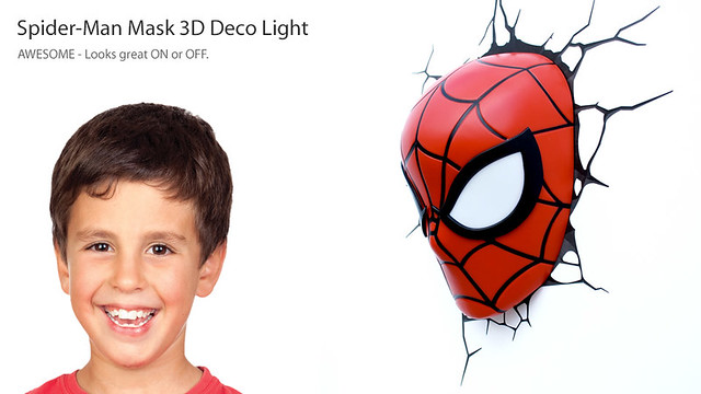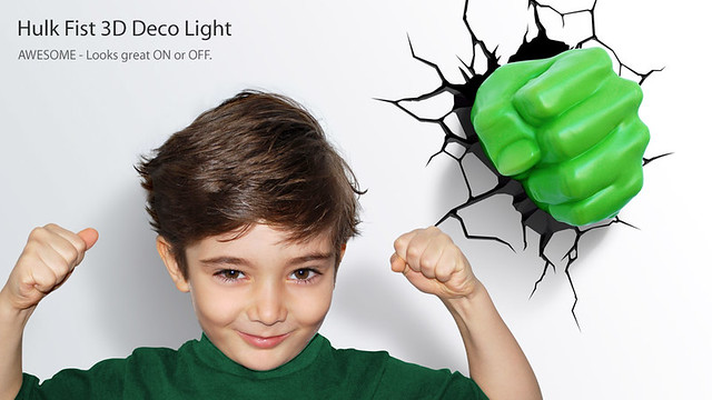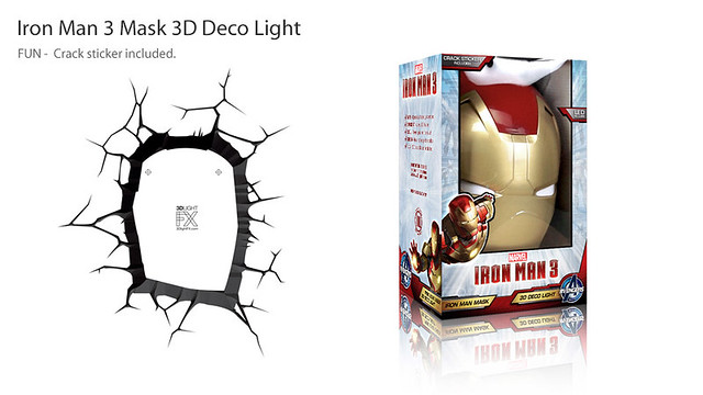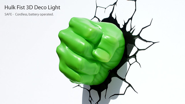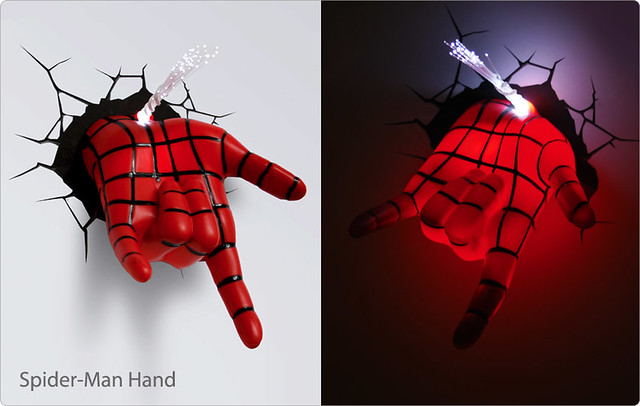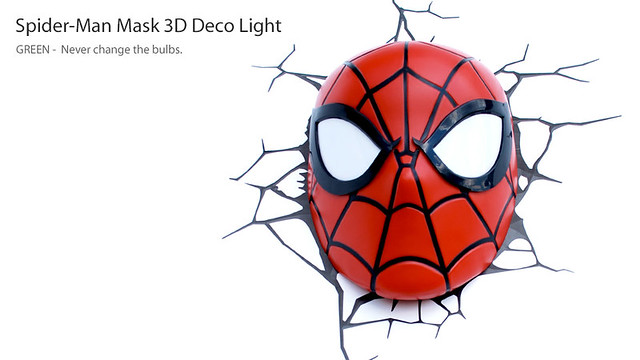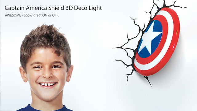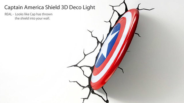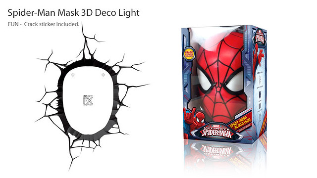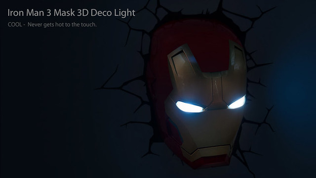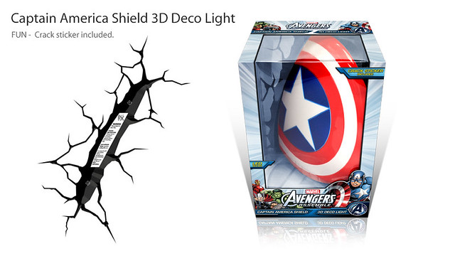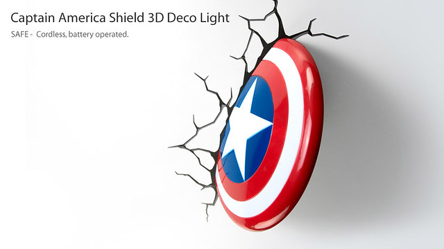 美國知名的燈飾廠商3D LIGHT FX 推出了一系列美國超級英雄壁燈,充滿魄力的造型,搭配破牆而出的裂紋圖樣貼紙更增添氣勢!~ 燈飾使用三顆三號電池供電,免去了醜陋的電線外露,並且採用LED 發光機制,燈飾不發熱令其更加地安全。