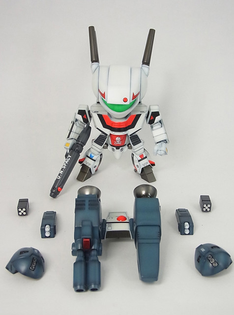 此外,還將搭配了主翼展開/收納、替換用手部零件以及新版造型的飛彈筴艙(ミサイルポッド),各式的替換配件可自由調配,能夠組成普通版本的バトロイドバルキリー!~