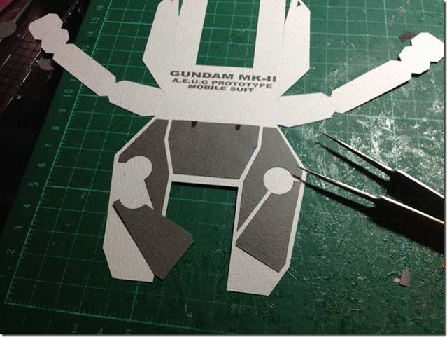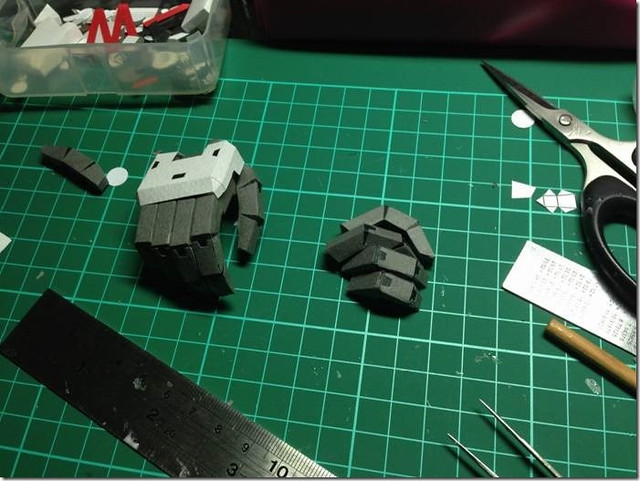 ↓ 裙甲內部也是慢慢“刻“(不同色紙拼貼)出來的!