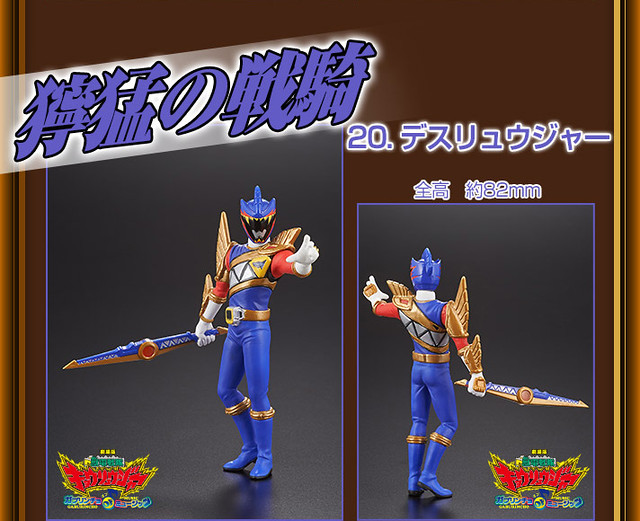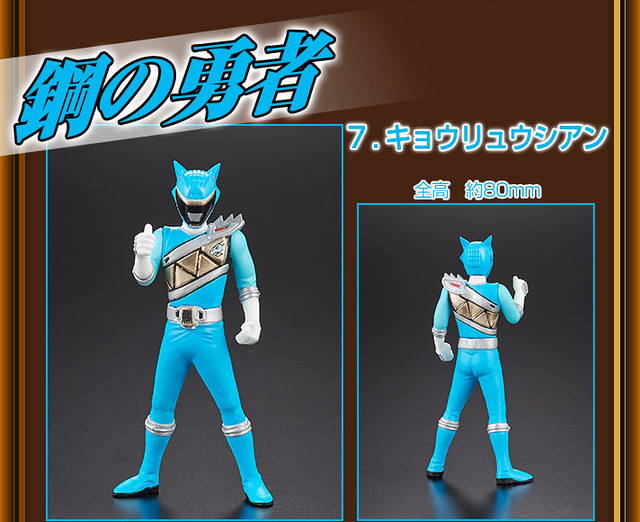 BANDAI 的HG エイチジーヒーローズ 推出《獸電戰隊強龍者》(獣電戦隊キョウリュウジャー)作品「超級戰隊EX ―史上最強的勇氣―」(スーパー戦隊EX ―史上最強のブレイブ―),豪華地集結了「獸電戰隊 強龍者」6名成員、亡領軍(デーボス軍)幹部...等總計20名主要角色,以生動的造型搭配豐富的姿態變化以及精緻塗裝的色彩,打造了一款高質感的人偶收藏。