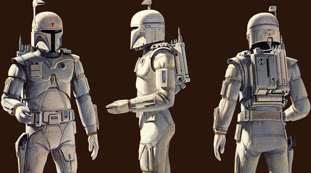 在最初,波巴‧費特這個角色的設定是用於黑武士“達斯‧維德”(Darth Vader),一個邪惡的賞金獵人。但後來隨著劇本的改編,將“達斯‧維德”(Darth Vader)描寫成了一個墮落的黑暗武士,而賞金獵人的構想就被留下來了。而我們看到的波巴‧費特白色原型裝甲,由星際大戰美術概念設定師Ralph McQuarrie 所創作,最初是設計予"super troopers" 這個兵種單位,但隨著劇本的演變,而改將這套裝甲給予賞金獵人“波巴‧費特”,並為了區隔帝國暴風兵(Imperial stormtroopers)與“達斯‧維德”之間的黑白視覺效果,而賦予了其裝甲一個新的配色。