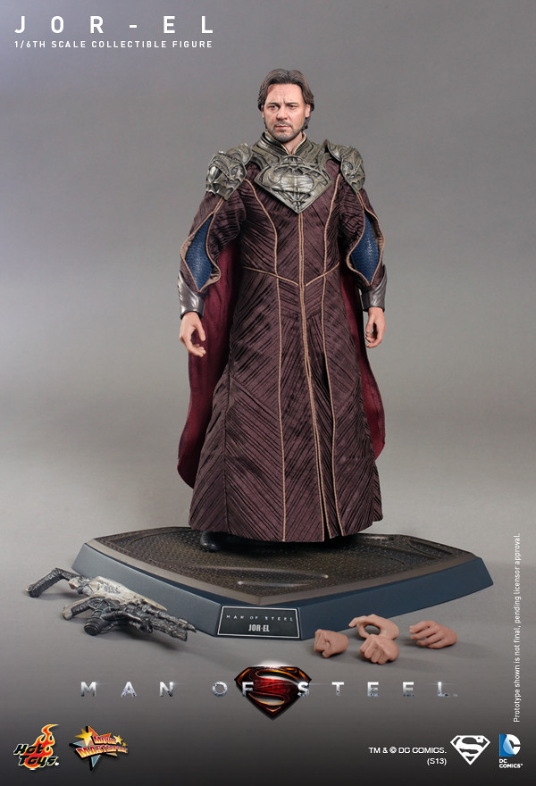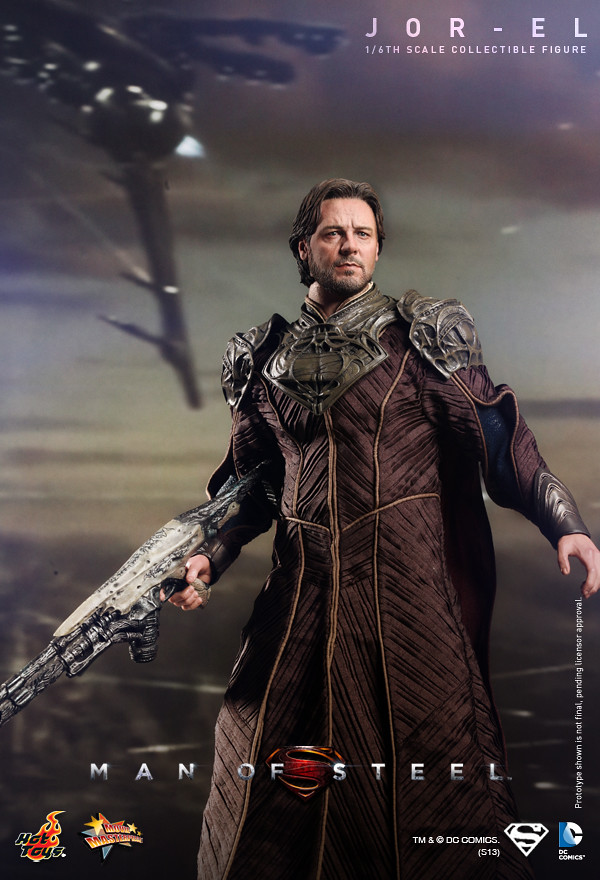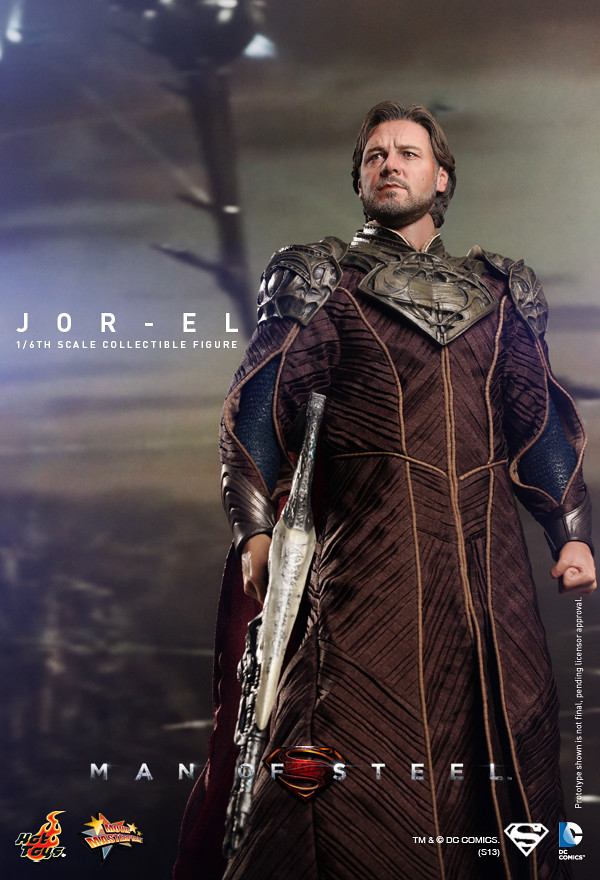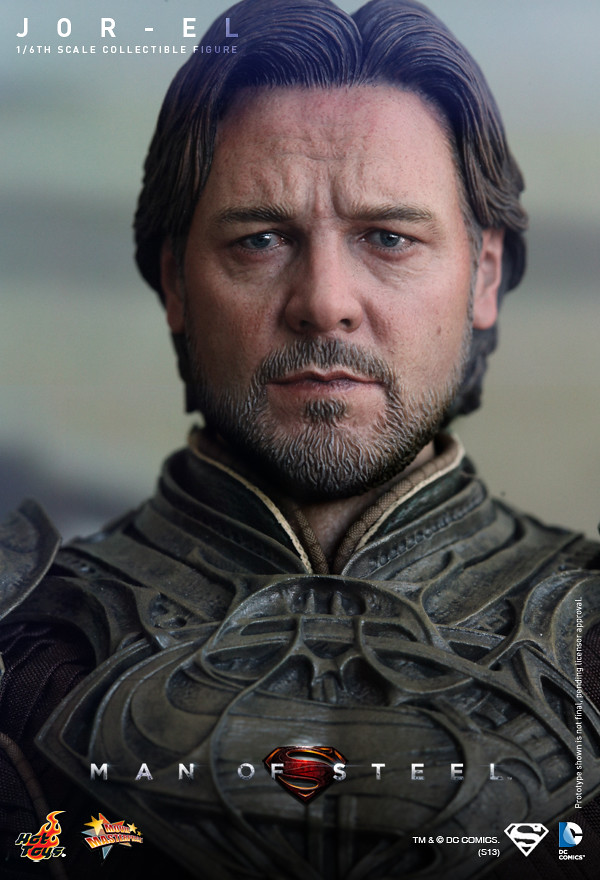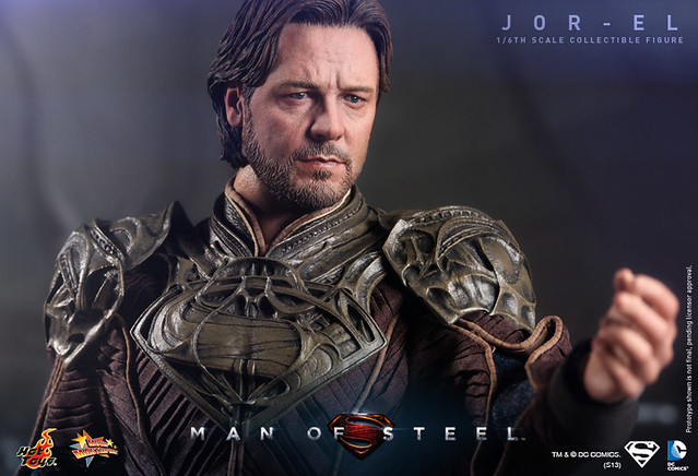 Hot Toys 繼上一次宣布值得紀念的MMS第200號作品為「MMS200 超人:鋼鐵英雄 - 超人」之後,再度推出第二款【超人:鋼鐵英雄】系列作品,超人生父「喬艾爾」(Jor-El)。這一個角色是由知名的好萊塢影星“羅素‧克洛”(Russell Crowe)所飾演,由Hot Toys 新的頭雕師 Im Jung Hyuk 製作極為逼真的頭雕,以初登場的Krypton 星球服飾作為設計,搭配經典的讚石型“S”字樣地台。