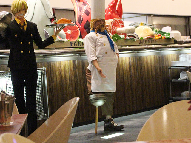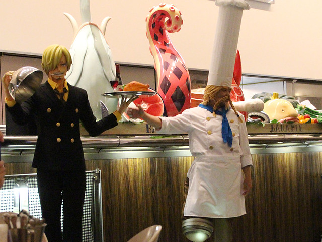 在日本台場的富士電視台7樓屋上庭園中由香吉士擔任副主廚的海上餐廳「芭拉蒂」(海上レストラン バラティエ)已經開幕一段時間了,餐廳的外觀採用沙巴卡西亞壹號(サバガシラ1號)作為設計,並有香吉士雕像於餐廳吧檯前迎接來用餐的客人,並有請真人扮演主廚「紅腳」哲普(ゼフ)在餐廳和來用餐的海賊粉絲互動!餐廳的菜單當然以「海賊王」世界觀當中的人物或場景作為發想設計,可以參考一下下面延伸閱讀部分有詳細報導,各位海賊王粉絲可以利用暑假前往朝聖一下歐!