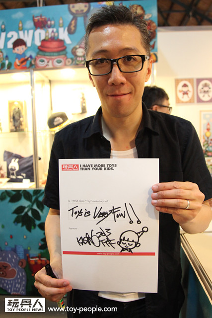▼ 此外,另一位同樣也是受到Michael Lau 所讚賞的香港設計師「Kila Cheung」,這次帶來的作品小明可是純手工手繪的作品喔!外貿超有型的設計師本人其實超活潑開朗!~ 有興趣的玩具人歡迎至A58 & A59 攤位找找這兩位香港設計師的明日之星吧!:D