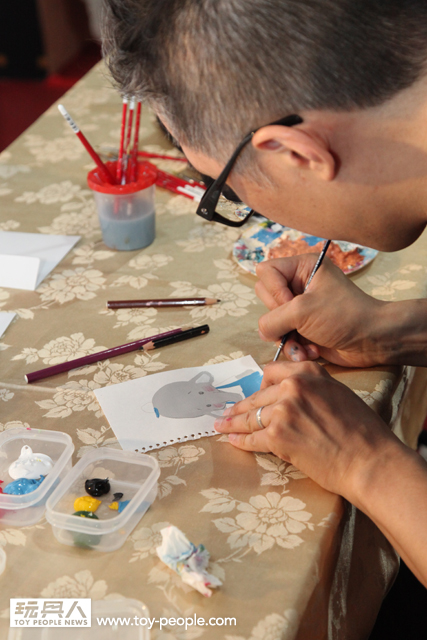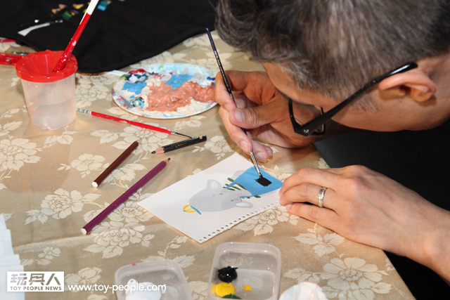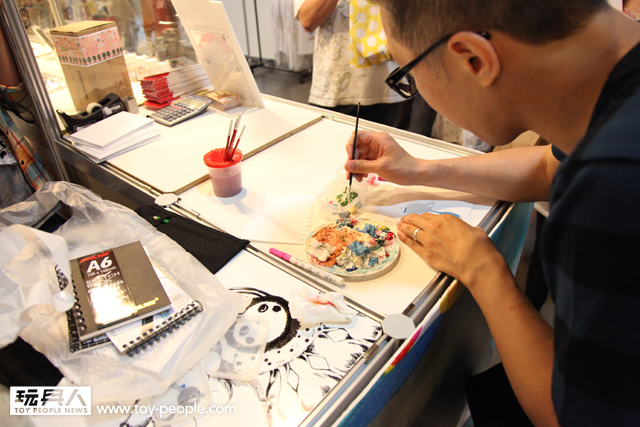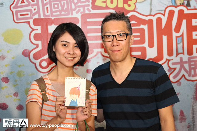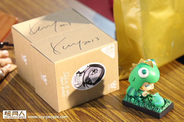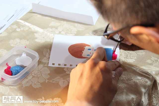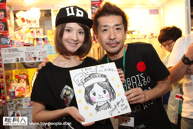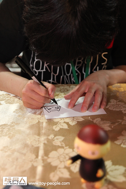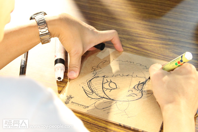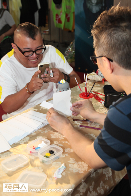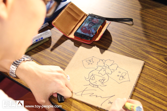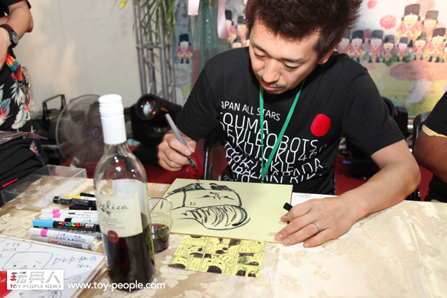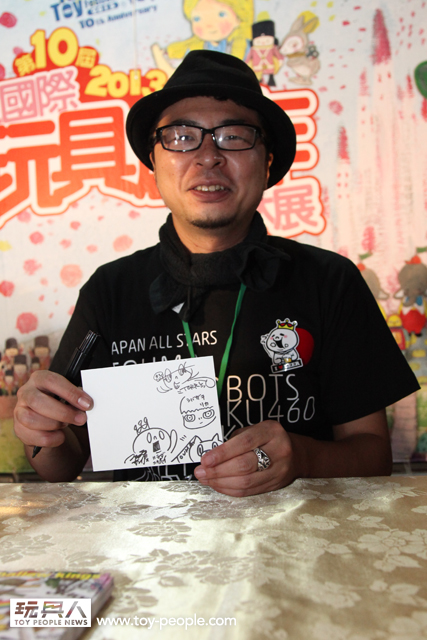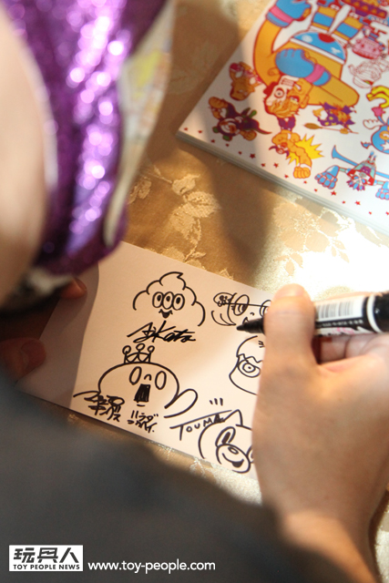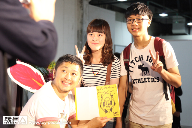 每年「台北國際玩具創作大展」(TTF2013)的重頭戲莫過於是設計師與玩具人們的見面簽名會,而今年開展當天就擺出了超豪華的陣容,打頭陣的就是醜比頭的設計師−名畑俊孝老師,簽名台下可是人山人海啊!每個玩具人都帶著滿滿的由老師所繪製的醜比頭角色走下台,看著側拍小編的心理真的是超級羨慕的。小編我也想要一張老師親筆繪製的ㄋㄟㄋㄟ頭啊~!