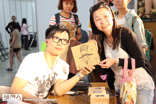 緊接接棒的是Molly 的設計師−Kenny Wong老師,從今天一開展,Kenny老師的攤位前面就擠滿了人潮,而等到老師開始舉辦玩具人見面簽名會時,台下的人又更加爆滿了啦!每個玩具人手上都拿著好多支Molly 的玩具在等待老師簽名。而今年老師為了慶祝「台北國際玩具創作大展」邁向第十個年頭,又繼出了超大的Molly 印章,每個玩具人除了能讓Kenny老師幫你蓋章簽名之外,還可以獲得老師親筆繪製的特別版Molly 啊!小編可是當場看到一個還珠格格Molly 呢!