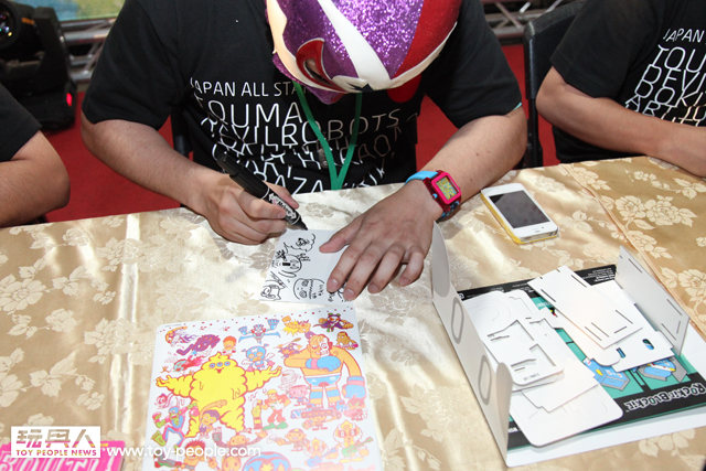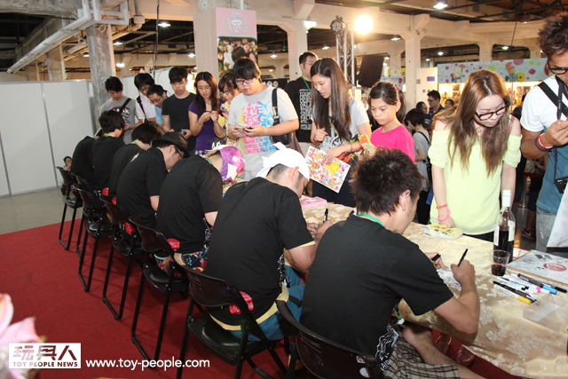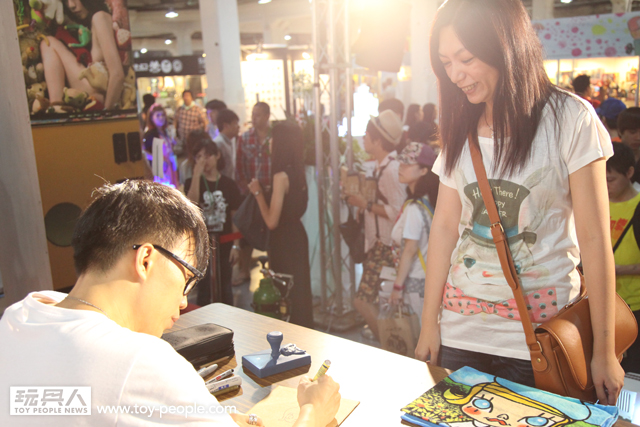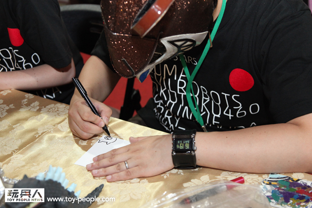雖然受到颱風影響,不過TTF 2013 第三天的簽名會重頭戲完全不受影響!豆腐人Devilrobots 、知名玩具設計師Touma ...等人所共同聯名舉辦的簽名會展開!~ 一次就能獲得多位知名玩具設計師的簽名,這是可遇不可求的超棒機會!面對台下擠滿了許多熱情支持的粉絲,令設計師們也一一以精彩的簽名、作畫來回應,舞台上可說是熱鬧滾滾!