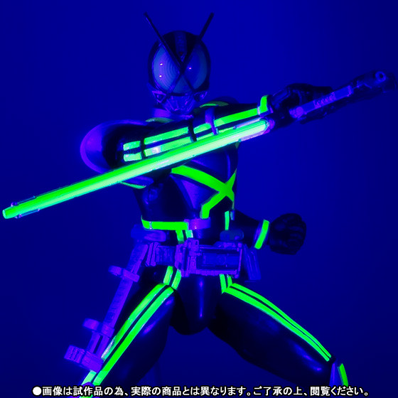 這次預計在魂Web線上商店推出GLOWING STAGE SET 發光底座版本(暫時翻譯),使用特殊吸光塗料在假面騎士KAIXA的身上條紋,在較暗的空間使用地台旁的展示Led燈的照射,呈現出發光效果的模樣,將於今日7月16日16點(日本時間)於魂Web線上商店受注生產販售,尺寸高約15公分,售價約6300元日幣,喜歡假面騎士KAIXA的玩具人可以考慮一下歐。