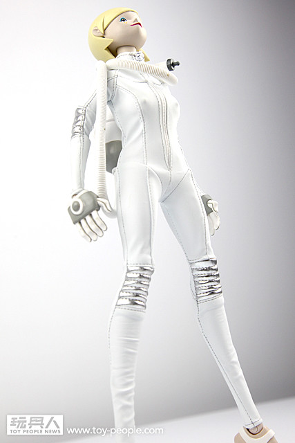 ▼ 太空裝採用白色的皮革與特殊的燙銀材質製作,皮衣材質有所改良,能夠提供較好的活動性,也不容易破,可以開心把玩啦!~