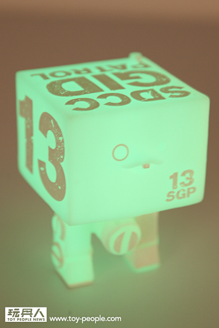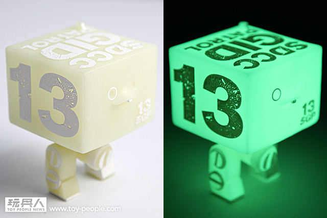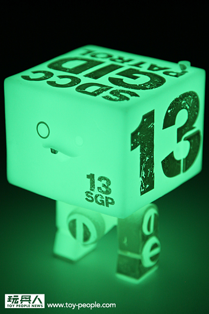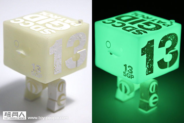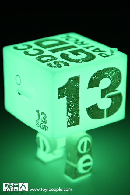 ▼ 比較一下發光前後的效果,機體上的斑駁字樣在夜光效果下相當酷!夜光材質的蓄光效果也相當強,在黑暗之中的發光效果非常的優秀~ 超棒!喜愛夜光效果的玩具人必定要收集!沒收集過夜光效果作品的玩具人,看到了一定會喜歡上夜光效果。