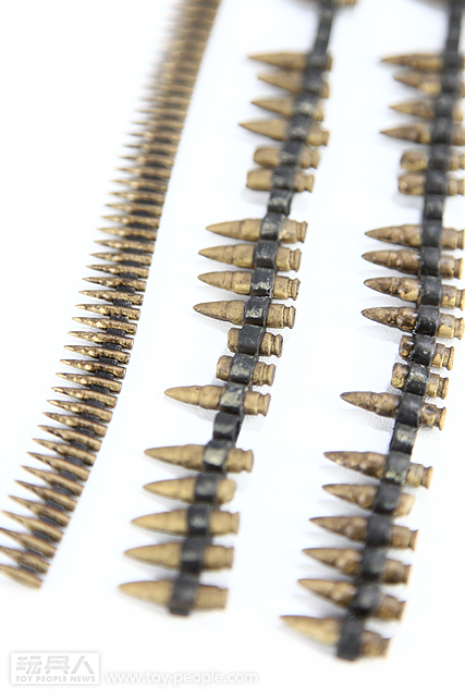 ▼ 裝飾的子彈,同樣也採用了相當細膩、逼真的舊化處理。大口徑子彈還有許多損毀看起來相當酷。子彈與彈鍊的塗裝完全沒有溢出,相當厲害的塗裝啊...