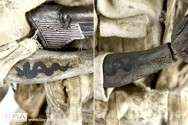 ▼ 白色塗裝的醫療殭屍手臂上的“蛇與骨頭”刺青比較清楚,但與服裝的對比也相對的弱。