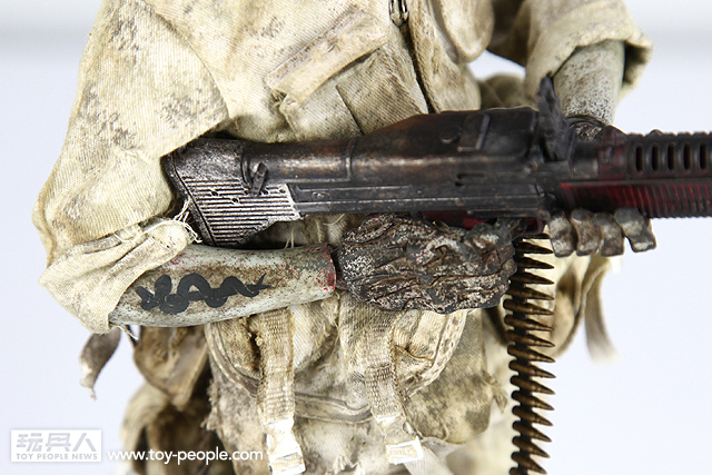 ▼ M60 GPMG 通用機槍(M60 General Purpose Mechine gun),施以經典的醫療紅白配色。舊化的效果相當驚人,每一個角度與細節都十分精彩,彷彿經歷了激烈的戰事。(感謝玩具人Yo Chin-hon 指正)