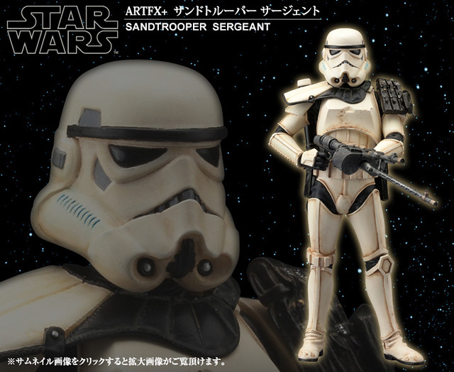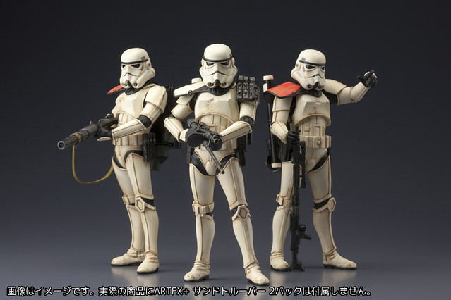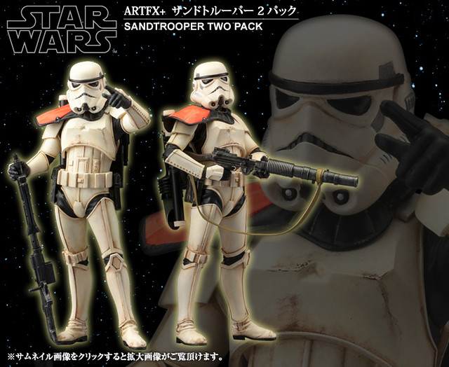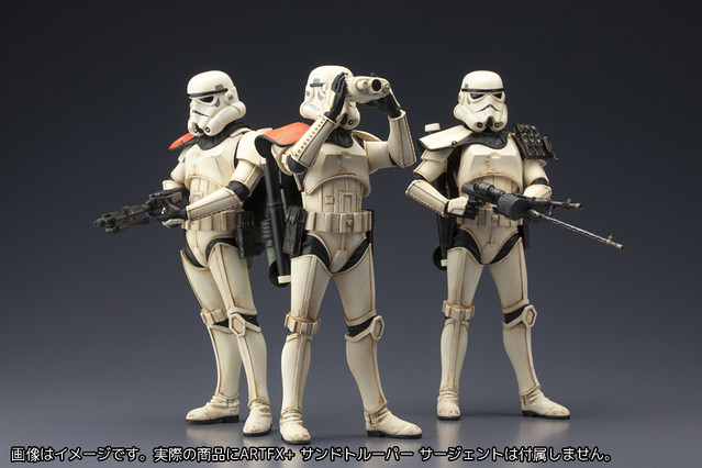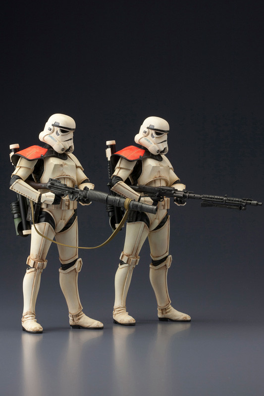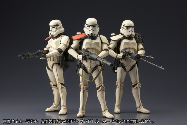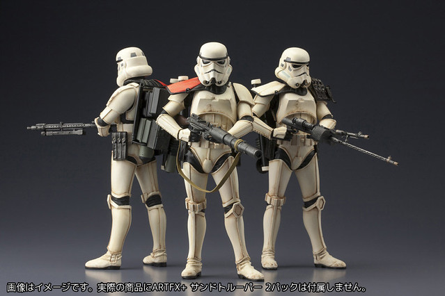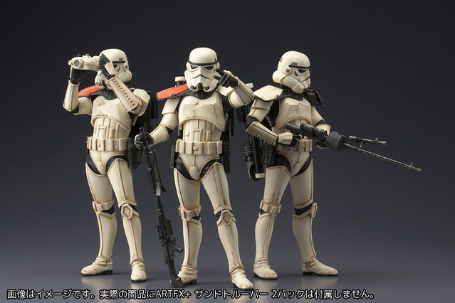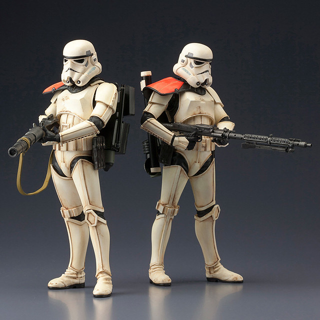 繼上一次的“ARTFX+ 帝國暴風兵建構組”獲得許多星戰支持者肯定之後,壽屋 ARTFX+ 系列宣佈推出粉絲高度期待的“『沙漠暴風兵』建構組”(Sandtrooper),並且分為『沙漠暴風兵 雙人包』以及『沙漠暴風兵 士官』。