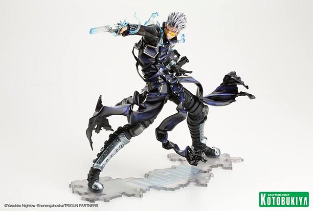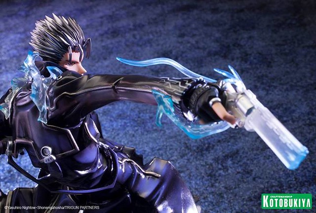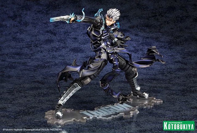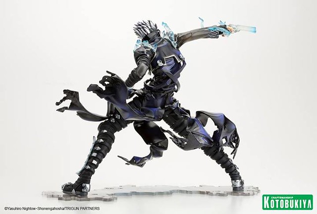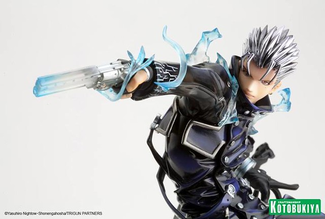 日壽屋玩具公司的ARTFX J Statue 雕像系列預計2014年1月推出Vash The Stampede -The Gunman In Black,十分受歡迎的動畫槍神 黑色版本,PVC材質塗裝完成品,尺寸應該和先前一月推出的槍神劇場版本一般高約18.7公分,以壽屋的FB官網公佈的宣傳照片看來相當精緻,發售價格尚未公開,提供給喜歡動畫槍神的玩具人參考。
