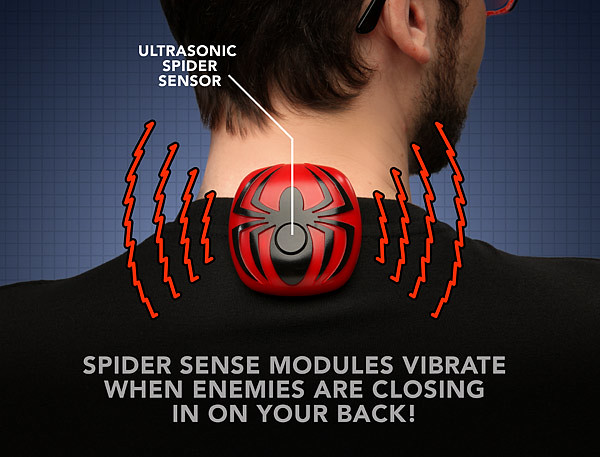這一款“蜘蛛感應” 能力T恤配備了一個超音波感應器,只要把他夾在T恤後頸的位置,只要有任何人接近你5呎以內(約152公分),你的“蜘蛛感應”就會啟動(感應器就會震動)!~