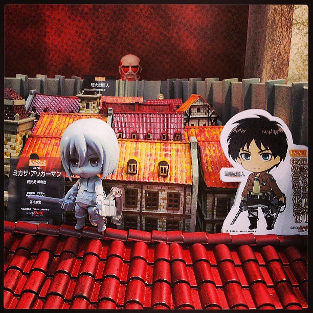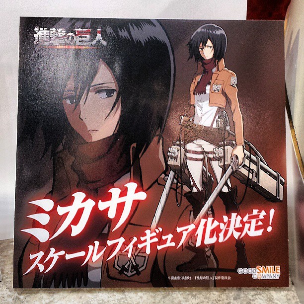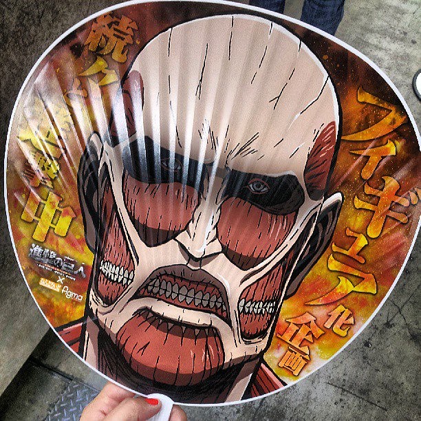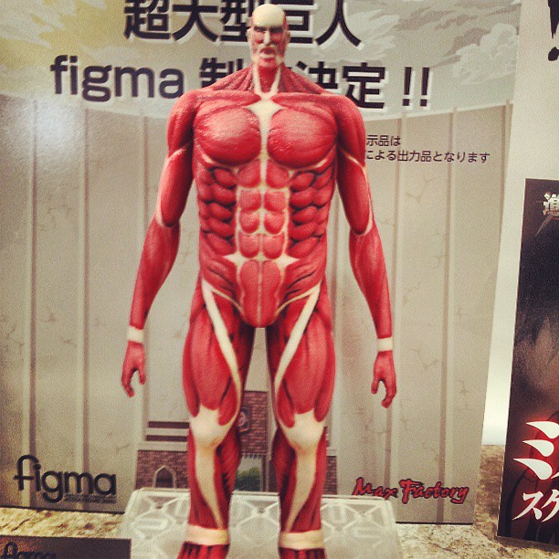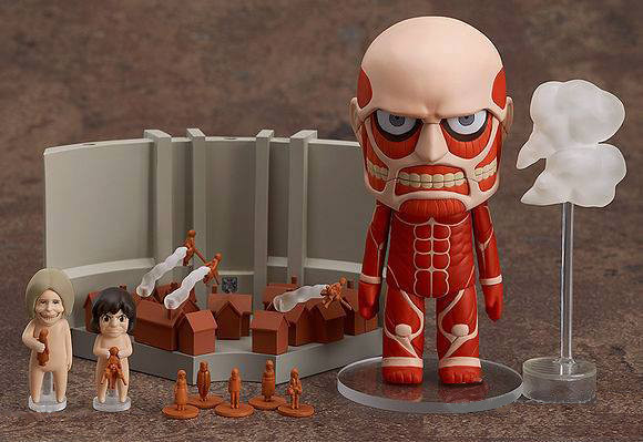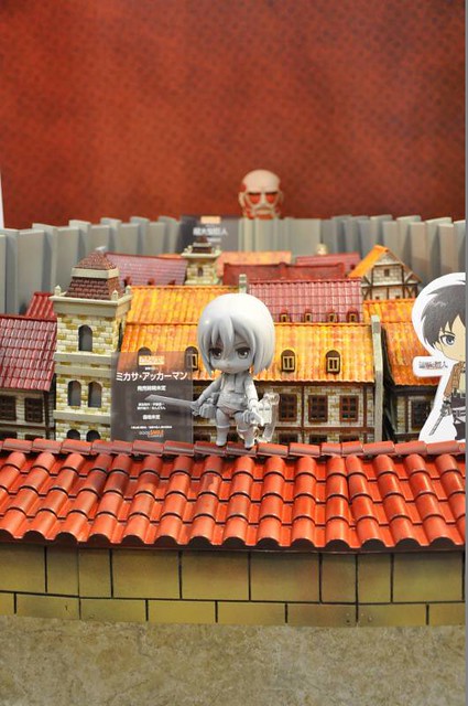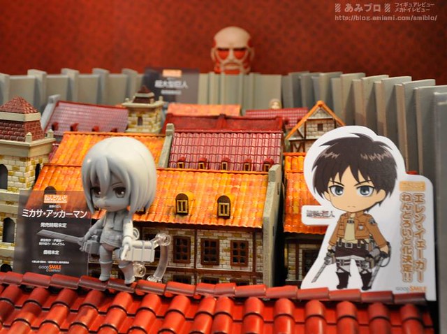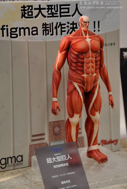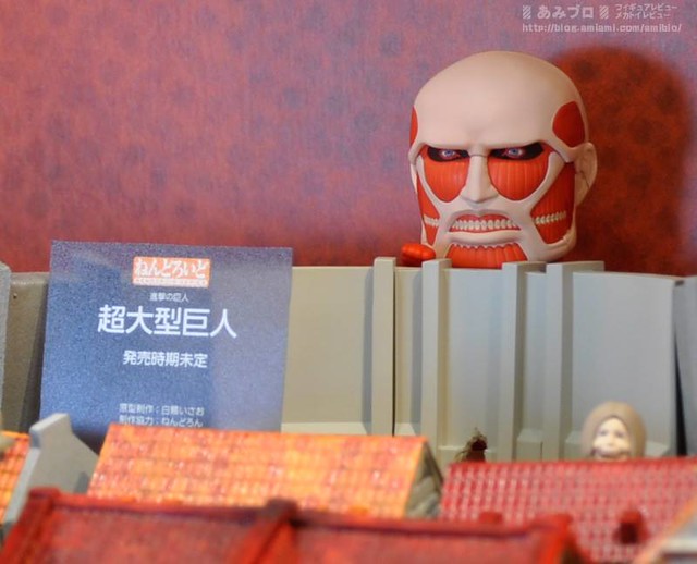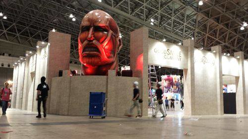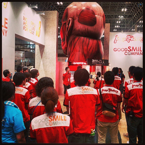 在昨天7月28日於日舉辦的Wonder Festival 2013(夏)展覽中Good smile company玩具公司公佈其取得進擊的巨人授權的相關玩具商品,玩具人特別整理多個玩具資訊網站的相關照片,good smile company這次將攤位特別打造成故事中出現的城市景觀,還放置了一個超大型巨人的頭來吸引目光,現場也請來故事中出現的調查團成員和巨人等等的角色扮演,也特別推出“巨人餐點”和贈送巨人頭像的扇子等等炒熱Wonder Festival 2013(夏)展覽的氣氛。