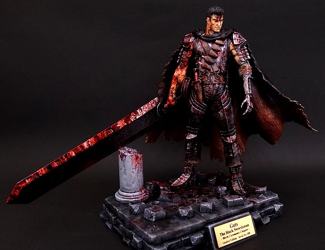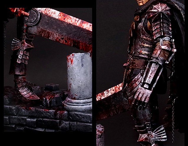 株式會社謙信(ART OF WAR)近日推出多款取材原作「生誕祭の章」的場景雕像,近日再公佈以前作原型做塗裝改版的「染血凱茲」(黒い剣士 生誕祭の章 限定III スプラッター彩色版)。顧名思義這版本的特徵就是用大量鮮血塗裝表現激戰後屹立不搖的凱茲,採1/10比例製作、寬33X深18X高22公分。限量50份日幣參考售價49800圓,預計9~10月預購截止,提供給大家參考!