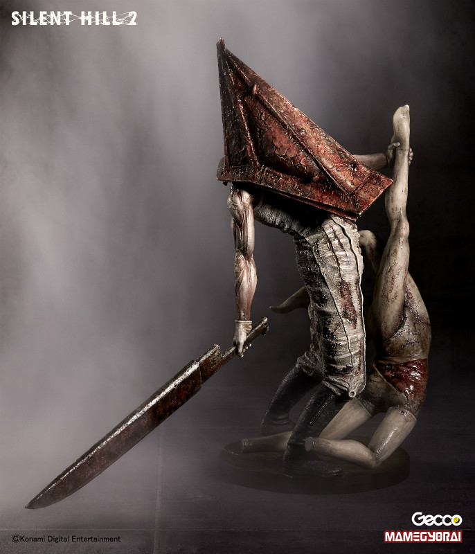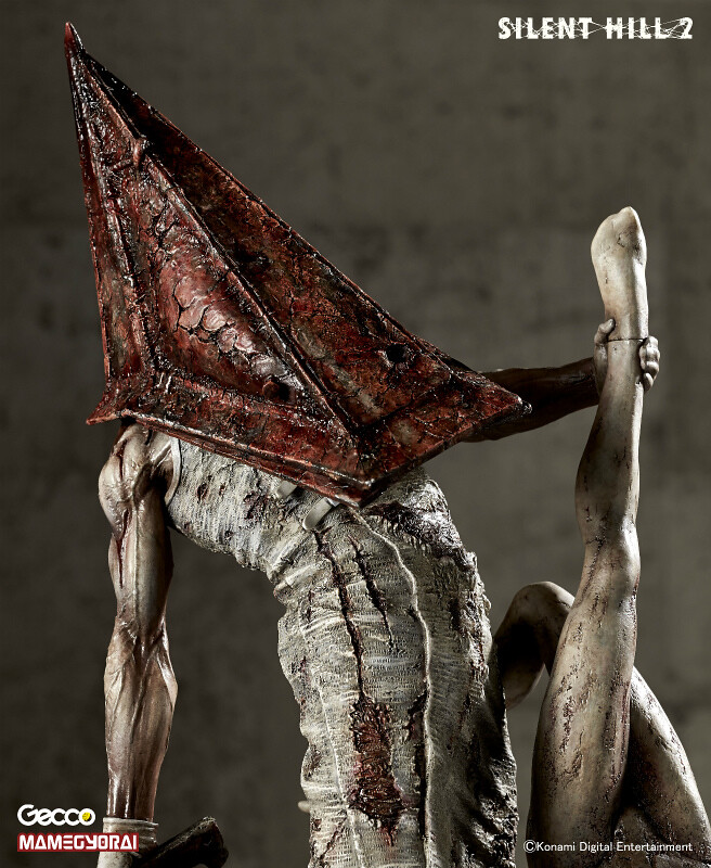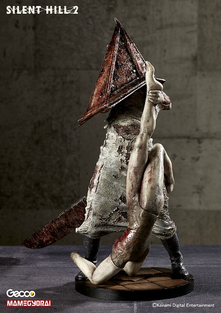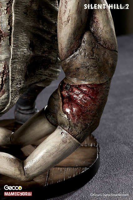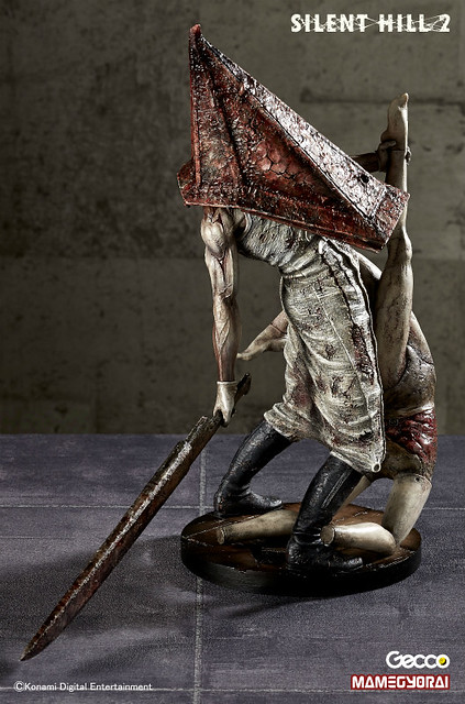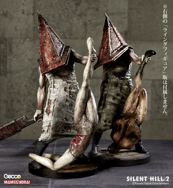 怪力無匹、造型詭異駭人的三角頭再推SDCC2013豆魚雷流通限定版!除了服裝、地台顏色略有變化,所虜獲的怪物也不相同(請見下方比較圖),而憑藉怪力所持大刀,原本單純的舊化變成滿佈濃綢血污的塗裝。全球限定1500組,全高約33cm,預計2013年7月發行,售價12,800¥,提供各位電玩迷參考!