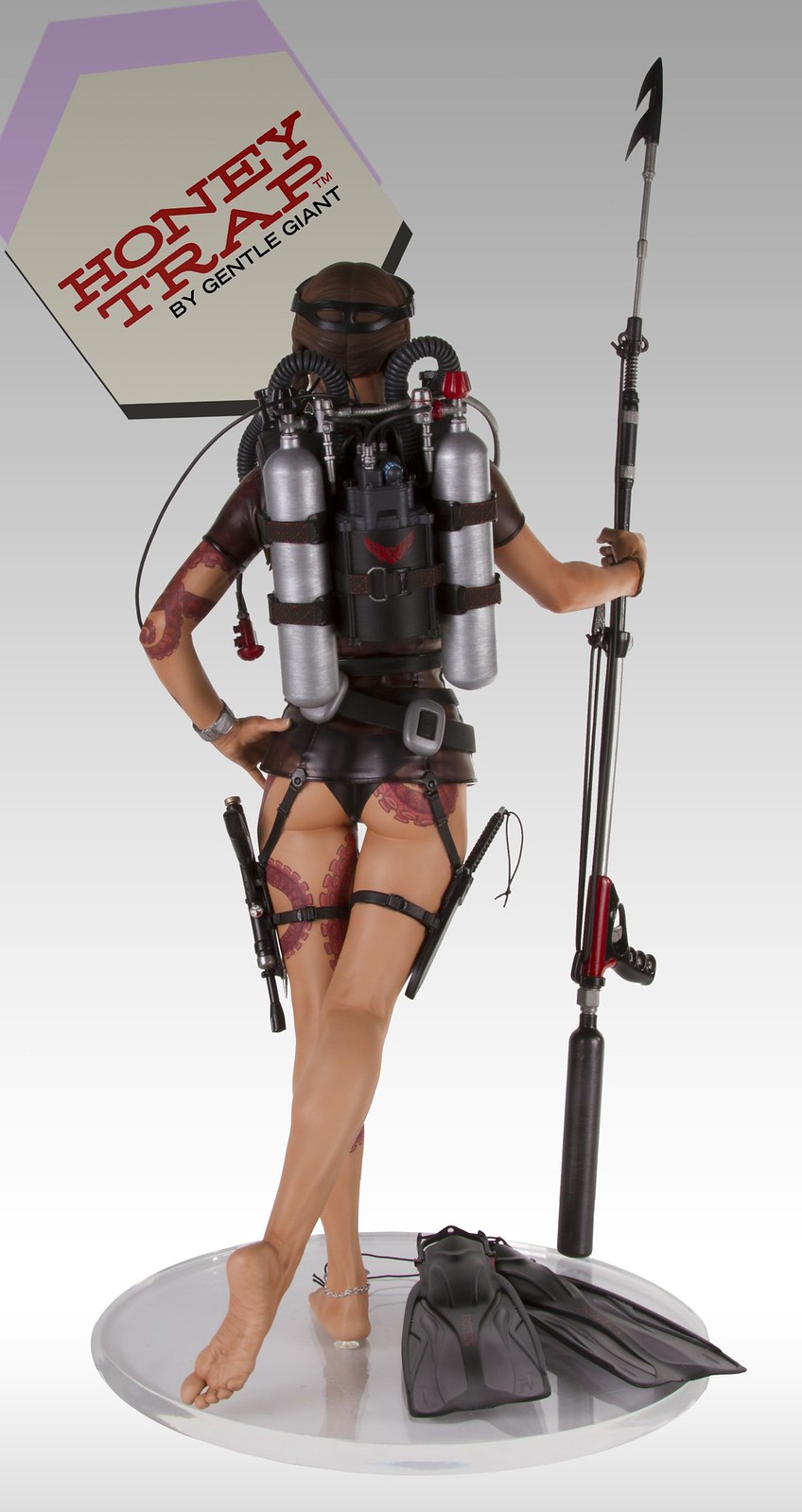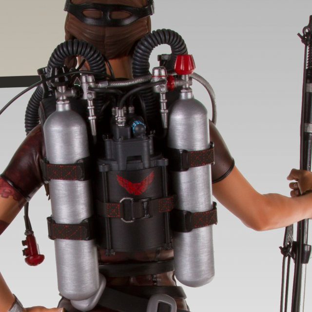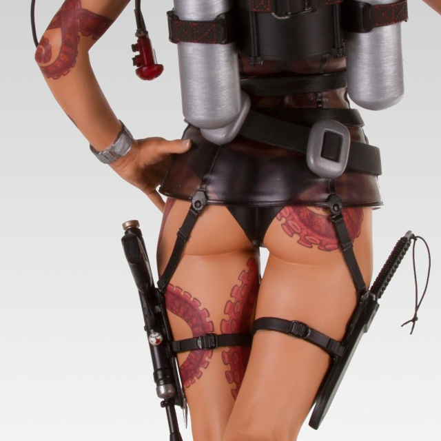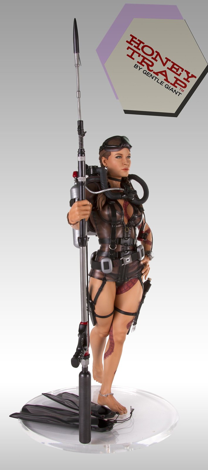 Whisper 角色的靈感是來自1965 年007 電影第4集“霹靂彈”(Thunderball)的龐德女郎“Domino”,潛水裝備與水中武器搭配曲線玲瓏有緻的惹火的身材,身上的章魚刺青更增添了野性、危險的氣質,加上神來一筆的腳鍊令其更加性感,這絕對會是一款經典又搶盡目光的獨特收藏!