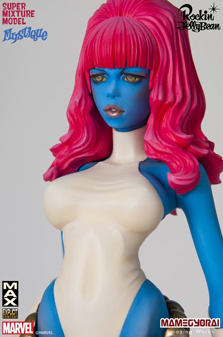 天吶,星期五前夕的夜晚總是特別High,EROSTIKA 公佈了MARVEL 公司與情色設計師Rockin’Jelly Bean 合作的第二款SUPER MIXTURE MODEL 的預購資訊,這次推出的人物角色是魔形女(Mystique),美術概念由Rockin’Jelly Bean 負責,而原型的製做與塗裝則由FRP 造型大師矢竹剛教一手擔綱。這次除了在人物表情、造型的設計一樣搶眼之外,在地台的製做也別有一番巧思,讓人感覺海報被立體化一樣。已經錯過第一彈的玩具人可不能再錯過第二彈啊!