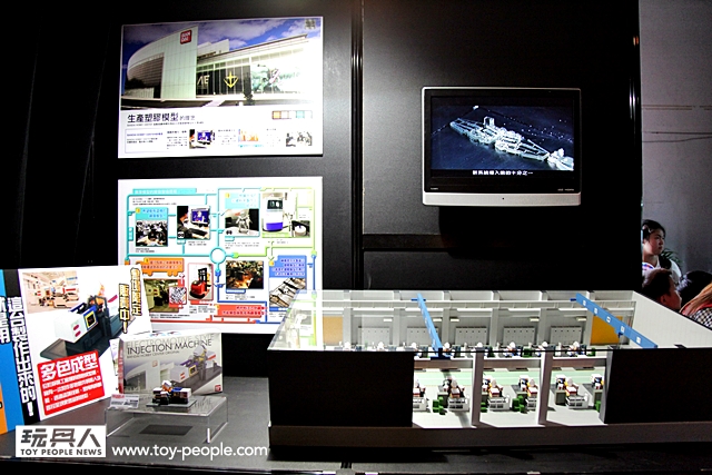 ▼ 大揭密!多年來深受世界各地玩具人所支持的鋼彈模型是如何製造出來的呢?左側有生產順序的解說,右側的電視則讓人更進一步瞭解這些過程。