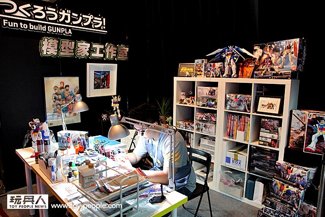 ▼ “密斯特喬”(Mr.JOE Model studio)工作室協力的真人場景“模型家工作室”,這個令人欣羨、超有FU 的場景,看了好想跑回家磨湯口、上墨線啊!(抱頭)... 這位默默作鋼普拉的,可就是“密斯特喬”的林子喬老師啊~