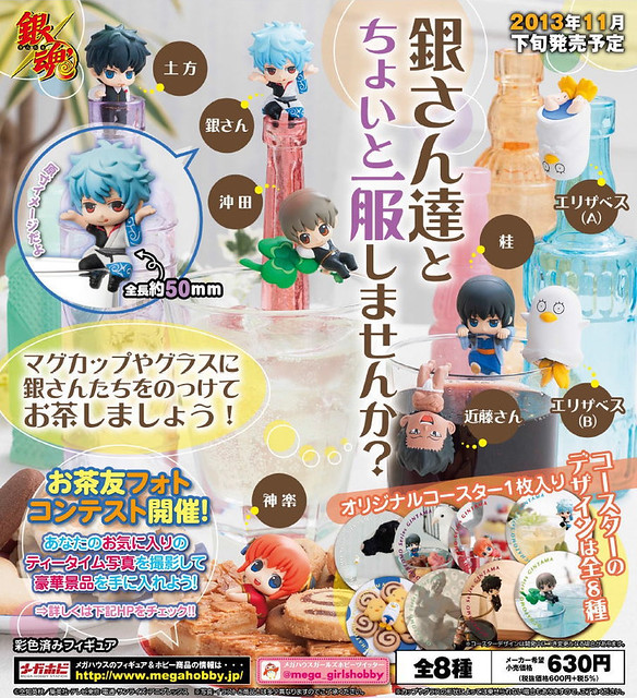 日本玩具大廠MEGAHOUSE 推出了知名爆笑漫畫「銀魂」新感覺系列商品“喝茶好朋友”系列(お茶友シリーズ),將「銀魂」當中的角色一一化作可愛的Q版造型,並巧妙地依照角色的性格,設計姿勢讓他們能夠放在杯緣,成為一個有趣又療癒的喝茶周邊商品~ 除此之外,每一個款式還將搭配一個有趣的情境照杯墊,讓喝茶時光變的更加放鬆啦!~