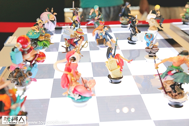 MegaHouse 除了精緻的收藏級玩偶之外,特殊的西洋棋主題盒玩「チェスピースコレクションR」也相當熱門。在會場的中央擺設了一個棋盤,展示出許多過去所發行的經典作品。將姿態生動、造型複雜的人偶濃縮為一個個小巧的西洋棋子,CP 值超高,絕對值得收藏擁有!(再多出幾個系列就能真的來下「海賊王」西洋棋啦!:D)