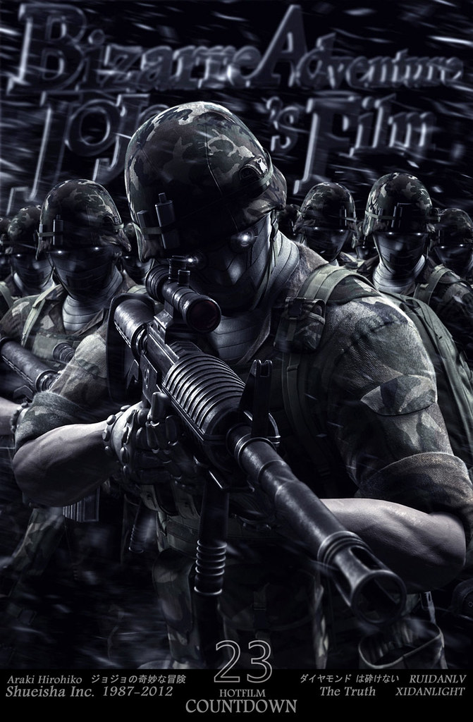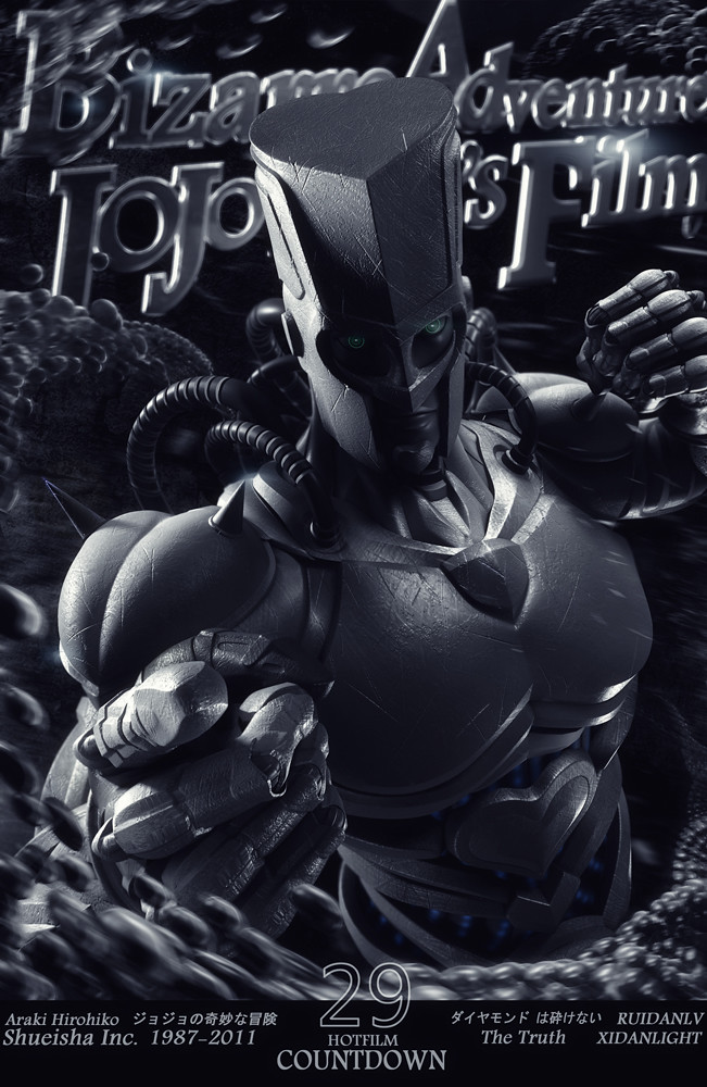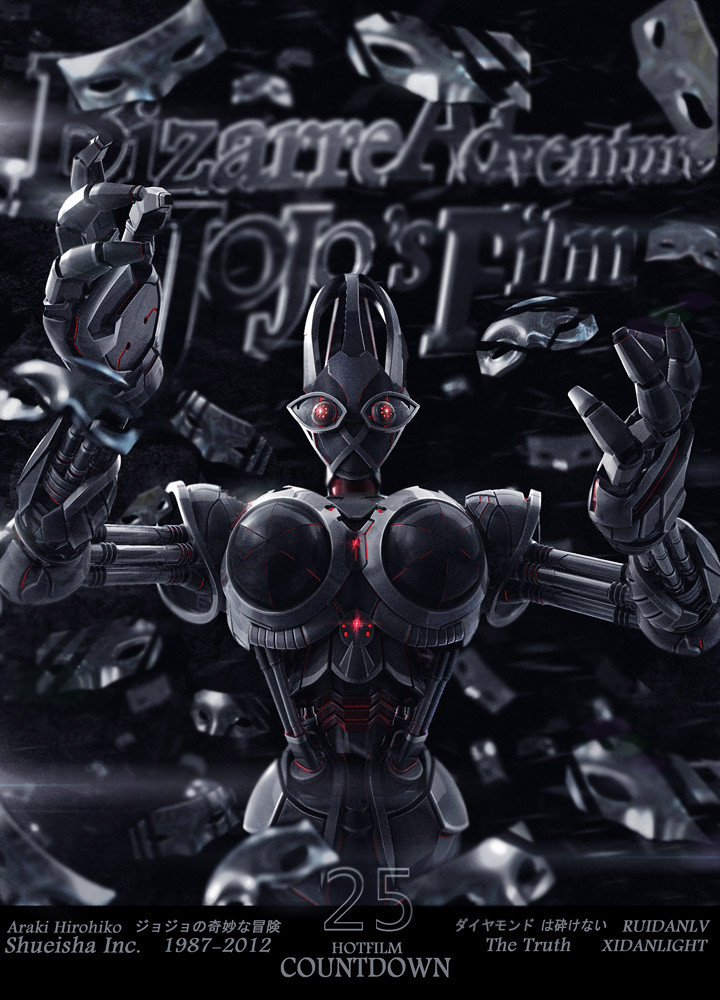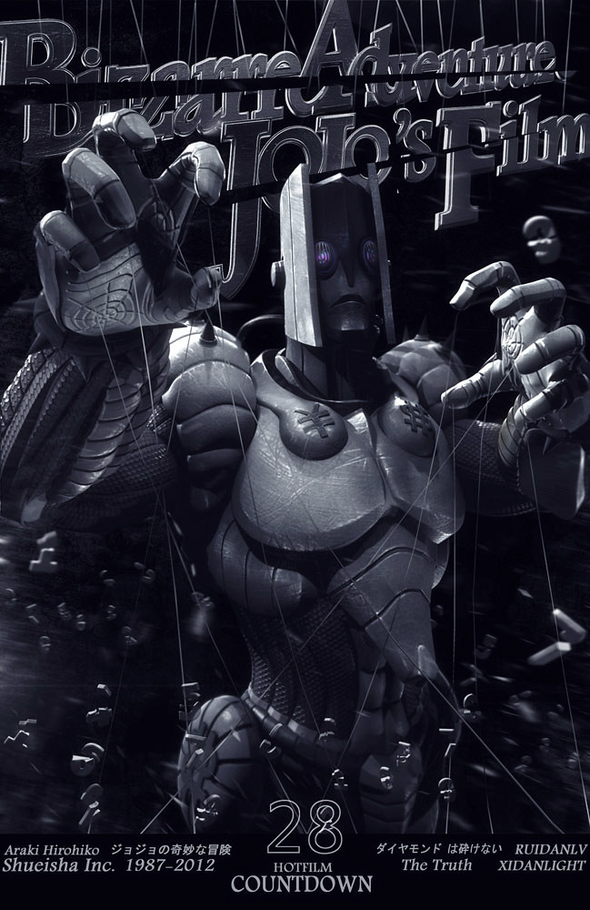 之前玩具人網站曾經就報導過JOJO冒險野郎的電影風格海報,當時只公開了白金之星、皇后殺手、瘋狂鑽石和轟炸空間等等四款,其精彩的構圖和JOJO冒險野郎的當中角色人物的繪製讓不少玩具人留下不錯的印象,近日才有玩具人提供來源,原來是由內地xidanlight設計公司所製作一系列以JOJO冒險野郎為主題式的電影海報創作,有之前沒公開的第四部 康一的替身回音3、胖重的替身錢寶寶、陸彩的替身灰姑娘、虹村形兆的替身破壞軍隊和反派人物吉良吉影的剪影等等,提供給喜愛JOJO冒險野郎的玩具人欣賞。