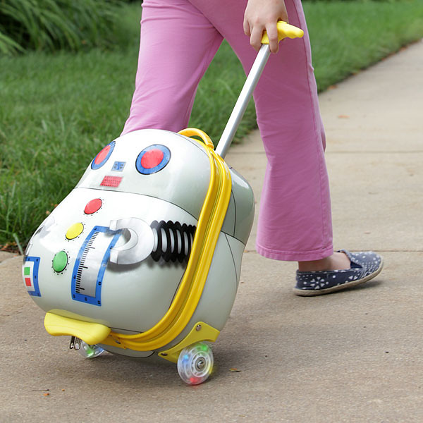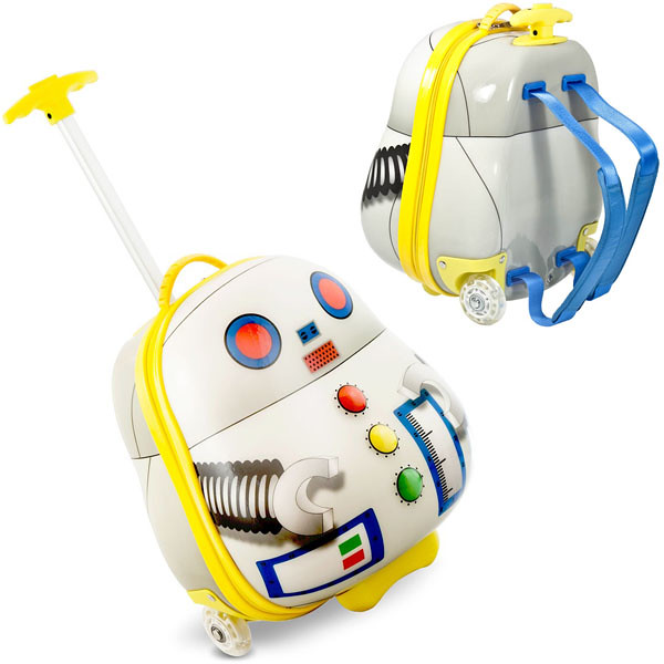 現代的小朋友照顧有加、活潑好動,而且每次出門總又要為他(她)帶一堆有的沒的,真是累死父母啦!但是如果能買一個可愛的包包讓她自己帶著走,順便消耗一下小朋友的體力也是不錯的策略!現在玩具人就為大家介紹一款機器人造型行李(Robot Luggage)。外型設計成小朋友都熱愛的可愛機器人造型,除了可以當行李拖行、也可以切換成背包模式十分實用!輪子還有彩色燈光設計,讓小朋友出門時會覺得新奇有趣,家裡小朋友都搶著搬行李,做大人的可就樂的輕鬆啦!本商品尺寸約15.3 x 11.4 x 7.9 英吋,美金參考售價約39.99美元,提供給大家參考!