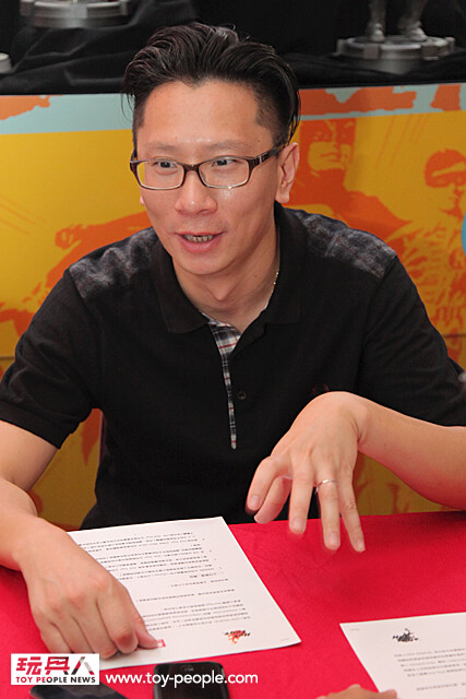 Howard Chan:在這個部分目前比較沒有考慮,因為這幾年Hot Toys 主要都是以電影角色好萊塢所拍攝的超級英雄角色為主,因為這在歡迎度與銷路上都有比較好的表現。為什麼我們會製作「風雲」的人物呢?是因為我與天下出版的馬榮成先生有一次機會能好好深談,他們也想和Hot Toys 合作很久了,我們討論了大半年才決定推出這款作品,當然在整體的銷路上是無法與超級英雄人物角色的作品相比較,但是在合作上是非常愉快的,能和馬老師一起合作真的很開心,因為我自己本身也是看著「風雲」漫畫長大的,但目前其他的漫畫作品還尚未有打算合作。
