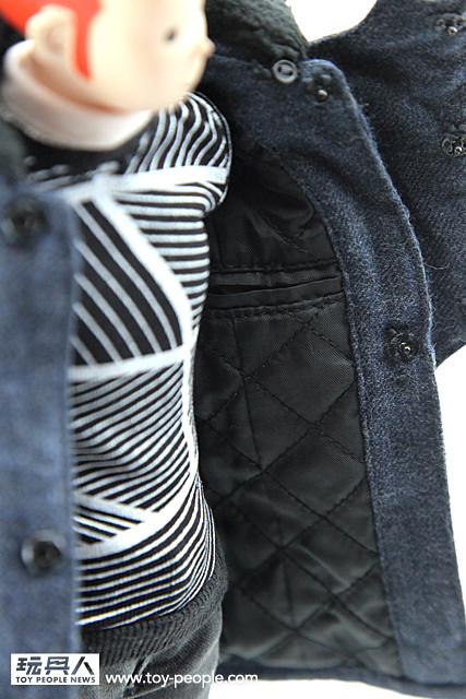 ▼ Dante 這次所穿的中長版外套,是來自比利時LES HOMMES 品牌的設計,Dante 身上所穿的這款大衣外套完全比照原版外套來打造的喔!不管是在版型、袖口、扣子、外套內的暗袋、內底的格紋車線都一一的呈現出來,最讓小編驚訝的則是外套領口的黑色絨布還可以拆卸喔!不愧是threeA 的製作水準,超帥氣的。