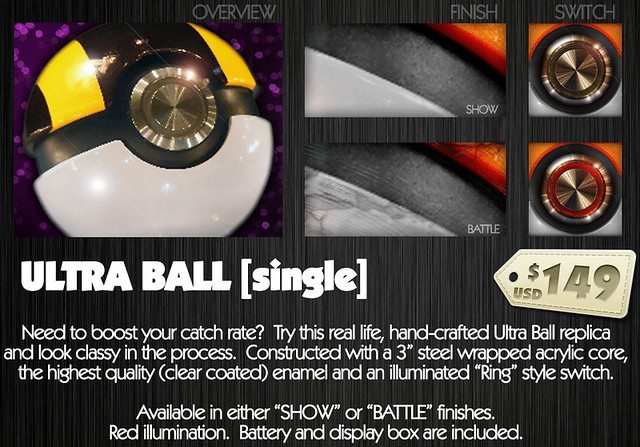 目前一共推出三個款式:「寶貝球」(モンスターボール / Poké Ball)、「首席球」(プレミアボール / Premier Ball)、「高級球」(ハイパーボール / Ultra Ball)。接下來還預計推出「華麗球」(ゴージャスボール / Luxury Ball)、「掌門球」(マスターボール / Master Ball)以及縮小一半的模型版本。