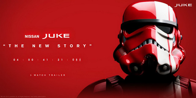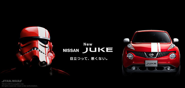 日本汽車公司「日產」(NISSAN)首先於2010年在英國上市的跨界跑旅“JUKE”,繼去年底與「黑暗騎士:黎明昇起」合作的“Dark Knight Rises Juke Nismo”之後,再度推出與與經典科幻電影「星際大戰」合作的特仕版Juke。